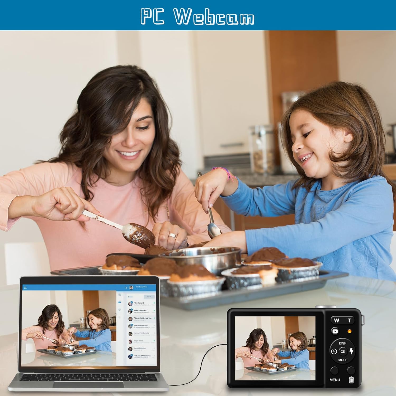 【Multifunctional Digital Camera】This digital camera with 2 batteries has four modes: photo mode, video recording, audio recording, playback mode, supports shooting 30MP pixel photos,2.8 inch display,18X digital zoom,face monitoring,smiling face shooting,anti-shake,very portable and easy to use,supports up to 32GB SD card(included)