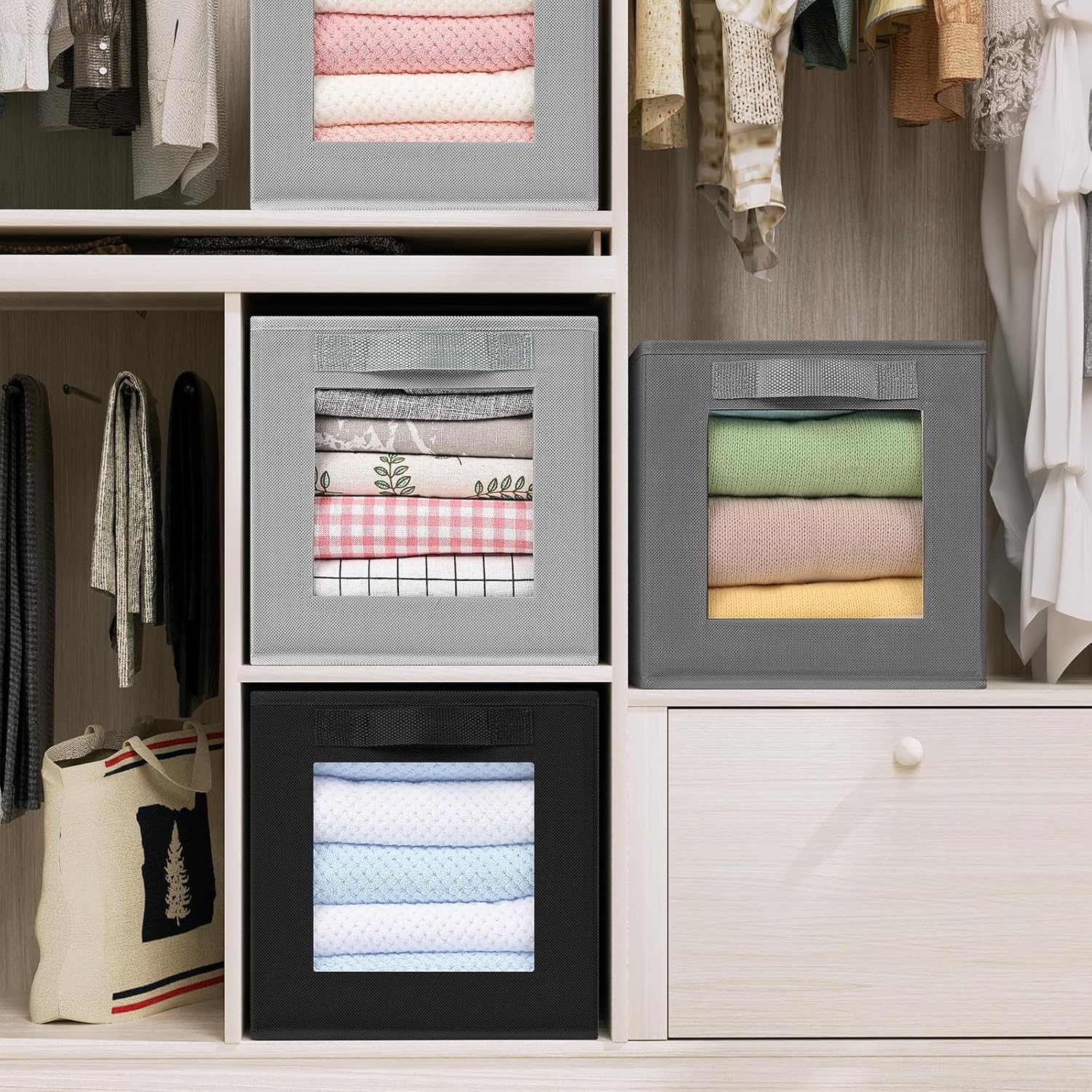 Open Storage Bins: Designed to store many things without lids, stackable and easy to access, cloth organizer bins are with clear window so that you can view and find your items easily. Besides, Collapsible storage baskets are with small easy-to-grab handles
