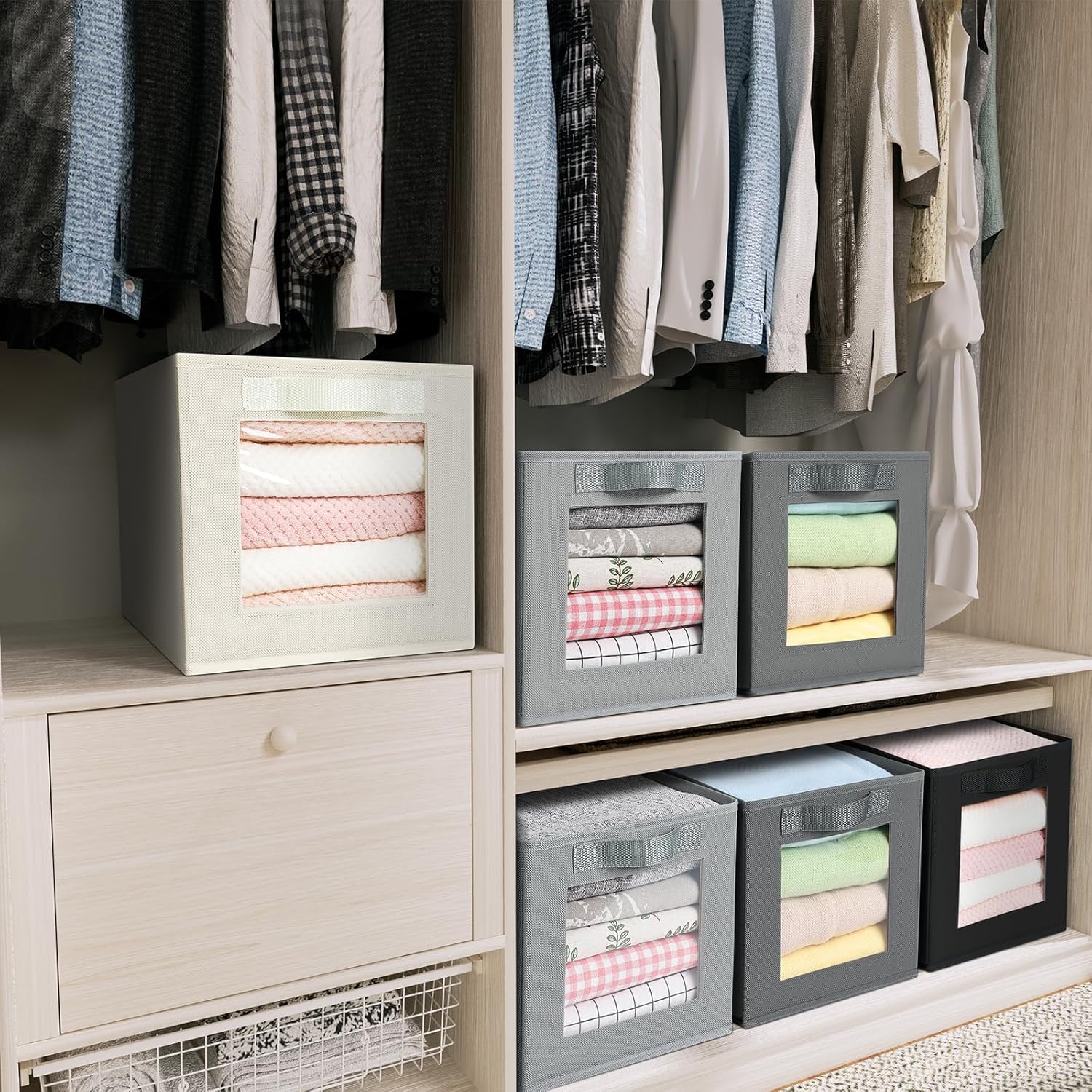 8 reviews for DIMJ Foldable Storage Boxes with Transparent Window Fabric Collapsible Storage Bin Basket with Handle for Wardrobe, Closet, Shelves Organiser (3 Pieces)