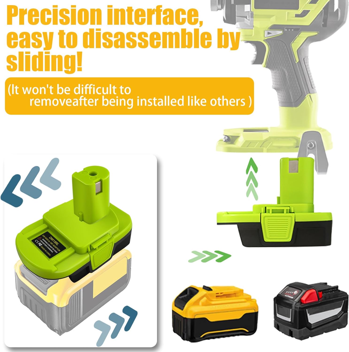 【Kompatibel mit DeWalt&Milwaukee Akku】Der Dewalt Milwaukee zu Ryobi Akku-Adapter ermöglicht die Verwendung von Dewalt 20v oder Milwaukee 18v Lithium-Akkus mit Ryobi 18v max Lithium-Elektrowerkzeugen. Ersatz für Ryobi 18v Lithium-Ionen-Akku