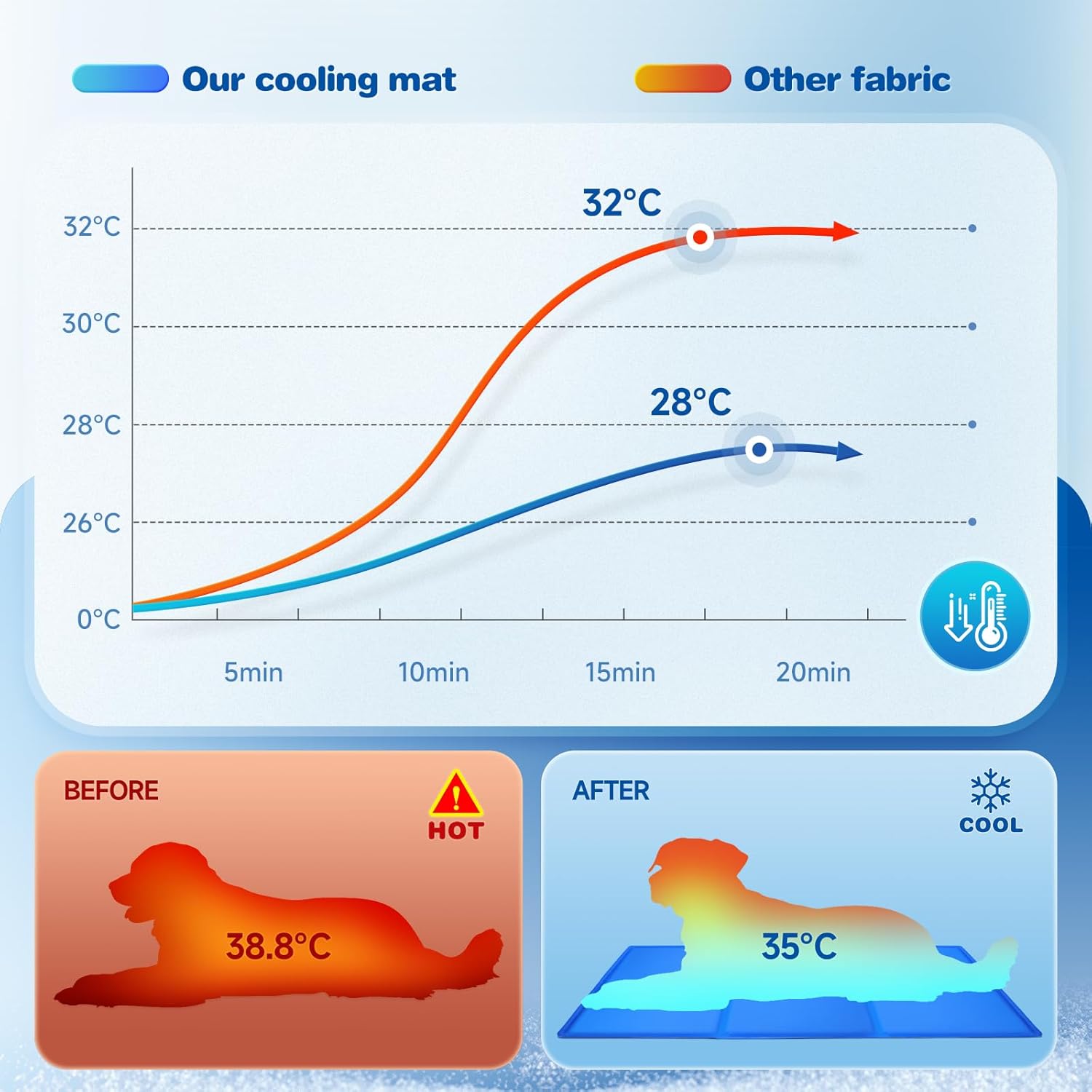 Multi-Purpose Use: Whether placed in crates, cars, on pet beds, or directly on the floor, this cooling mat for dogs ensures your pets stay cool and comfortable, making it ideal for hot summer days.