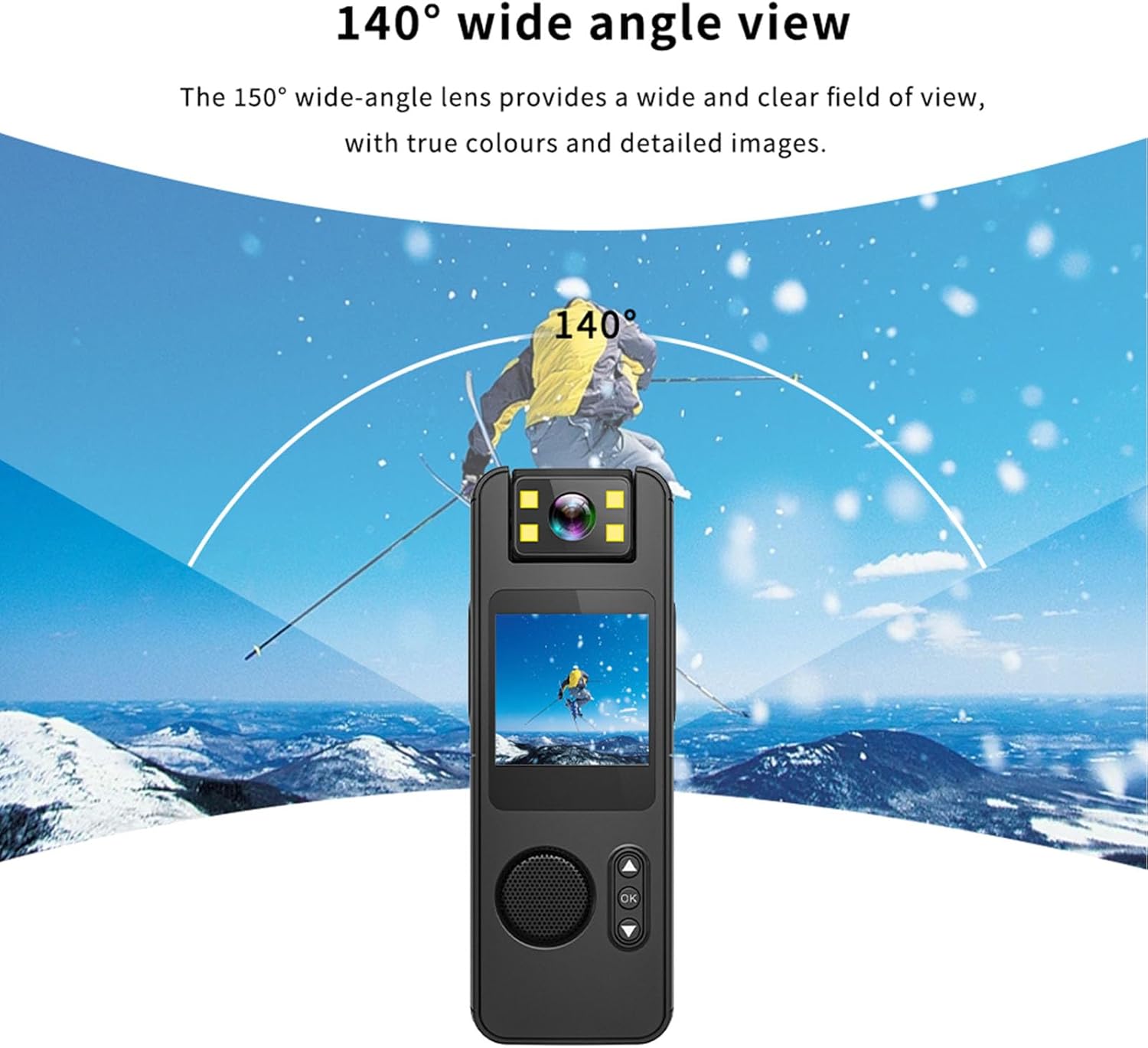 Rotating Wide Angle Lens: This wearable small camera comes with a premium optical glass and multi layer coating technology, a 1080P sensor, offering clear and precise video recording. Its lens rotates 180 degrees and has a super wide 140 degree angle for optimal recording.