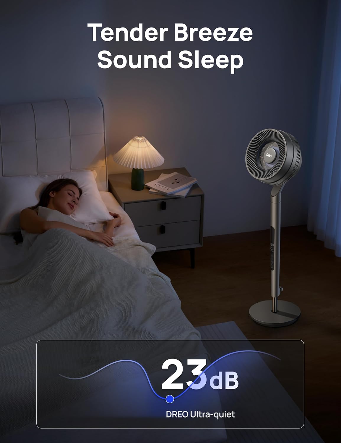 𝙂𝙚𝙣𝙩𝙡𝙚 𝘽𝙧𝙚𝙚𝙯𝙚, 𝙎𝙩𝙧𝙤𝙣𝙜 𝙄𝙢𝙥𝙖𝙘𝙩: The DREO pedestal fan features a dual-spiral design that provides a robust airflow with a soft touch. It offers a cooling experience without the harsh wind sensation, ideal for comfortable use all year round.