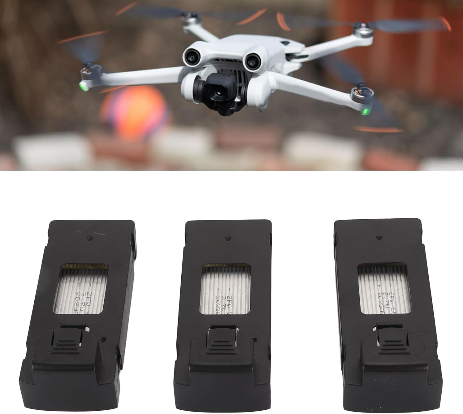 This drone battery replacement includes 3 drone batteries and a charging cable.