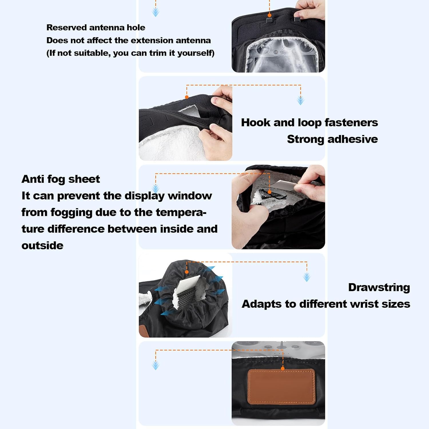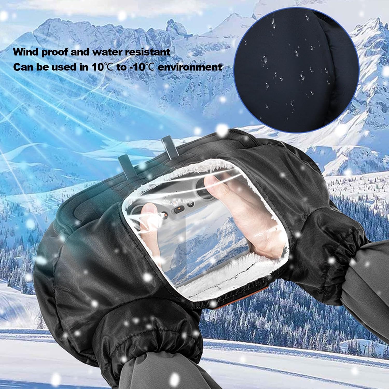【Clear Display Window】Enjoy clear visibility with the clear screen window that minimizes glaring. The built in anti fog sheet prevents fogging caused by temperature differences, allowing you to maintain a clear view of your remote controller’s display. Designed for heat accumulation, these thicken gloves offer superior warmth retention and windproof