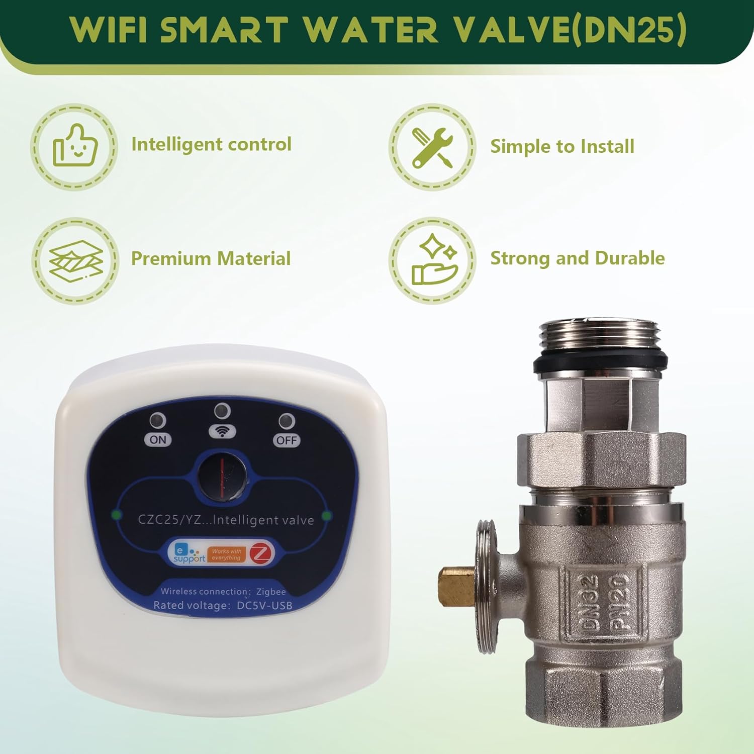 Dxoniislh Home Garden WiFi Smart Water Valve Wireless Controller Automation Shutoff Controller DN25 APP