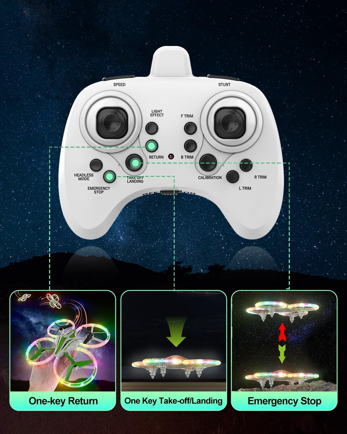 E-SMARTER Mini Drone for Kids with 5 Lighting Modes, 360° Flip & Roll Indoor Drone with One Key Take-off/Landing/Return, Emergency Stop, 3 Speed Settings, Christmas Gifts for Boys, Girls, Kids Toys