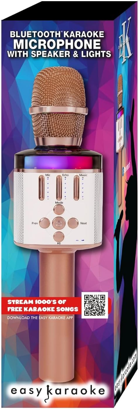 Easy Karaoke Bluetooth® Wireless Microphone with Speaker and Lights ~ Black