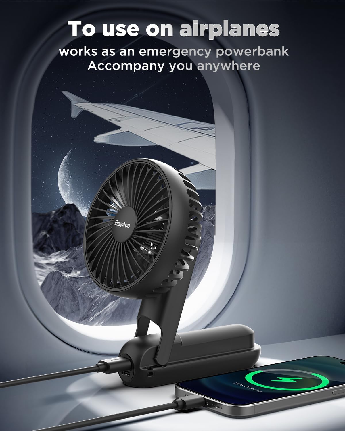 Updated 2-👍️【5000 Capacity Rechargeable Battery as Backup Power Fan】The portable fan can also work as Backup Power, the Micro port can provide charging for your phone,ipad,iwatch in case of emergency. The electric cooling fan with dual ports. TYPE-C fast charging port takes only 3 hours for fully charge the hand held fan.