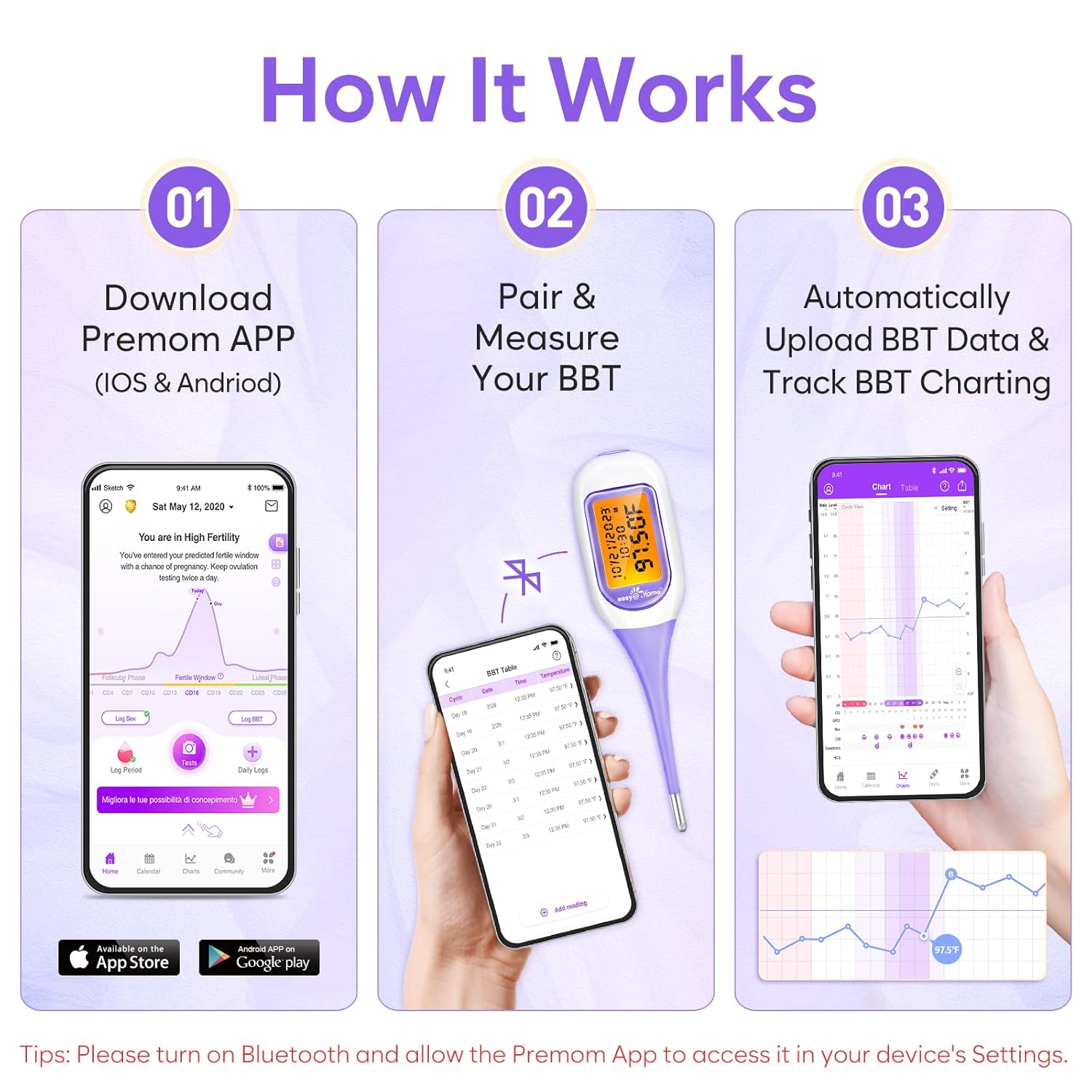 ✔GET PREGNANT EASIER THAN EVER WITH Premom: Whether you are trying to conceive (TTC), avoid pregnancy naturally, or just want to know your body better, the Easy@Home’s Premom with Smart Basal Thermometer does it all with ease.