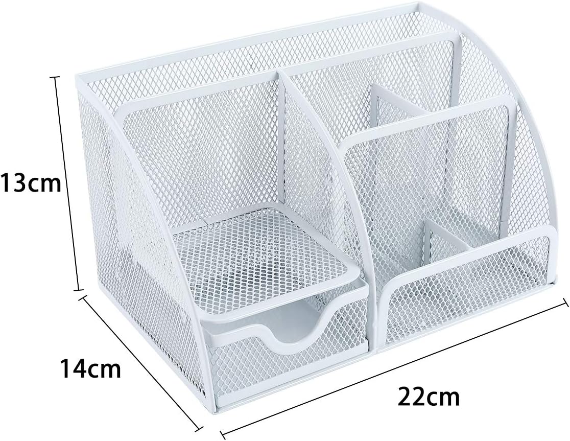 EasyPAG Office Mesh Desk Tidy Versatile Stationery Storage Desktop Organiser Pen Holder with Drawer,White