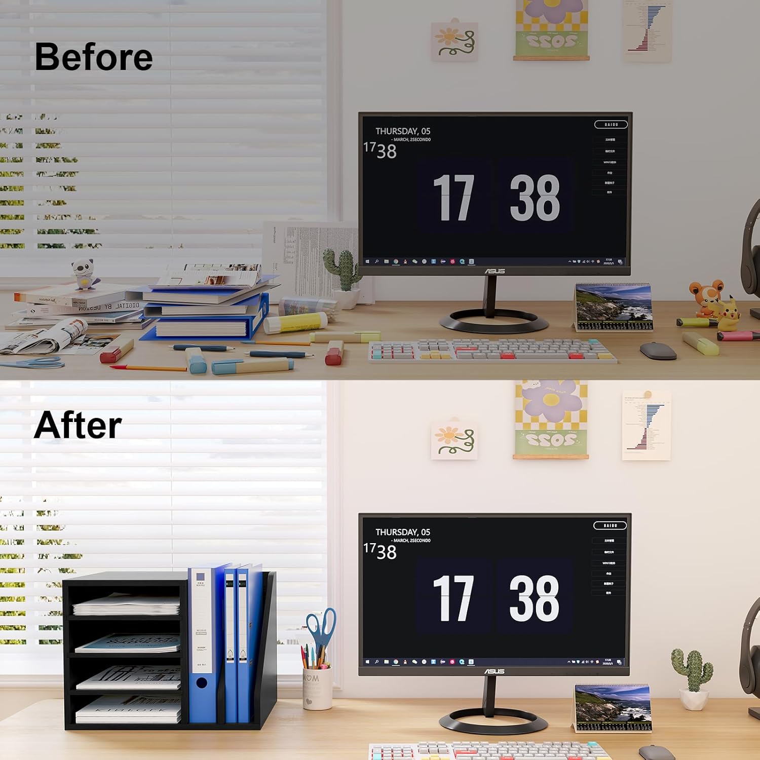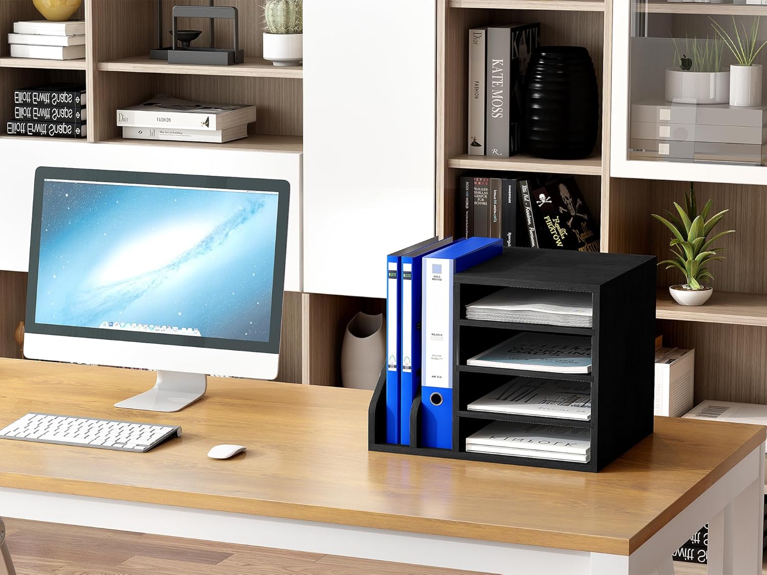 My desk has now more space for documents and is more organized. Easy to assemble too with the option to chose on which side you want to have the vertical boxes