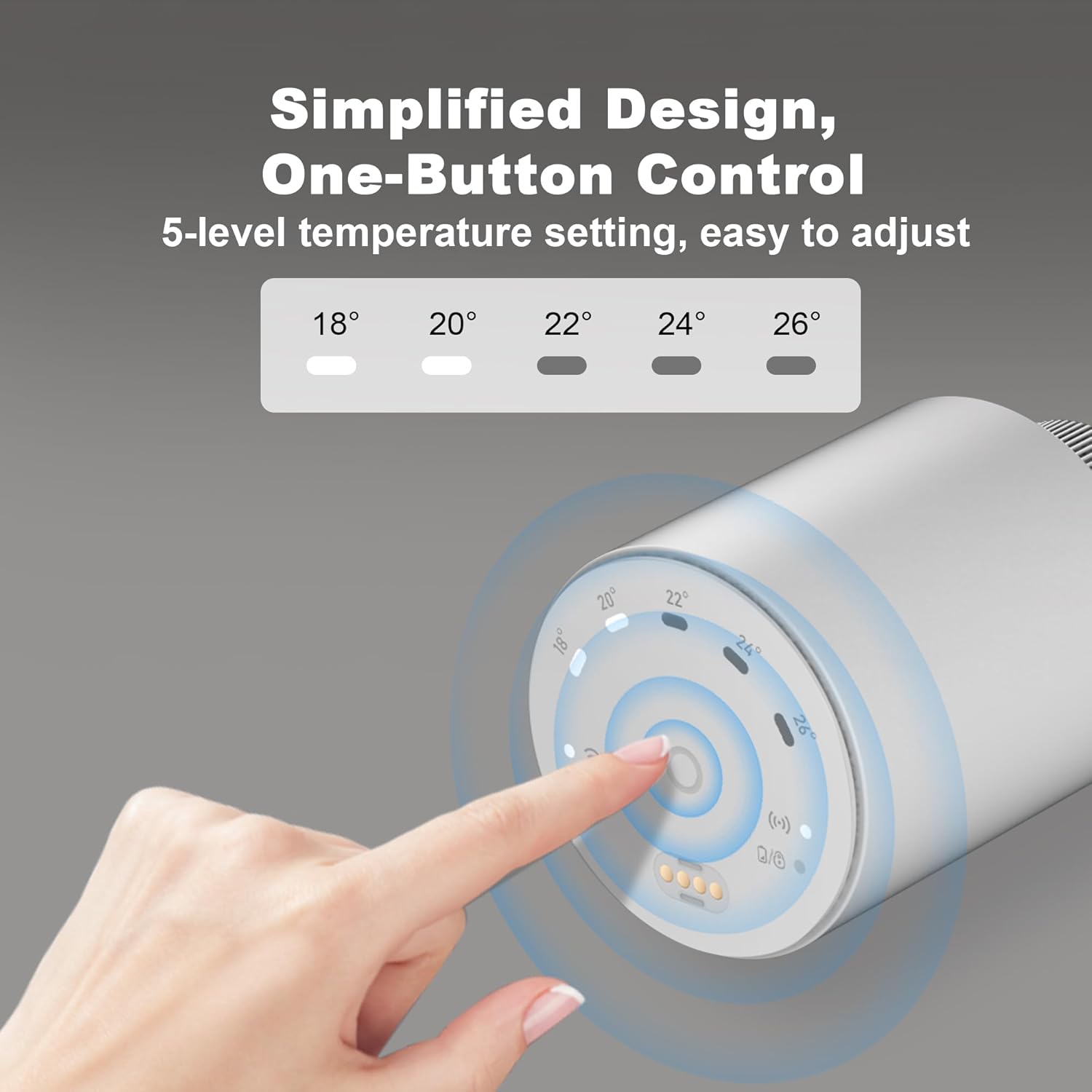Simplified Interface – The smart TRV is designed with simplicity in mind, offering 5 fixed temperature levels for quick adjustments. Say goodbye to the cumbersome rotary knobs of traditional TRVs—GEM TRV lets you achieve the perfect temperature with a single button press. This user-friendly design is suitable for people of all ages.
