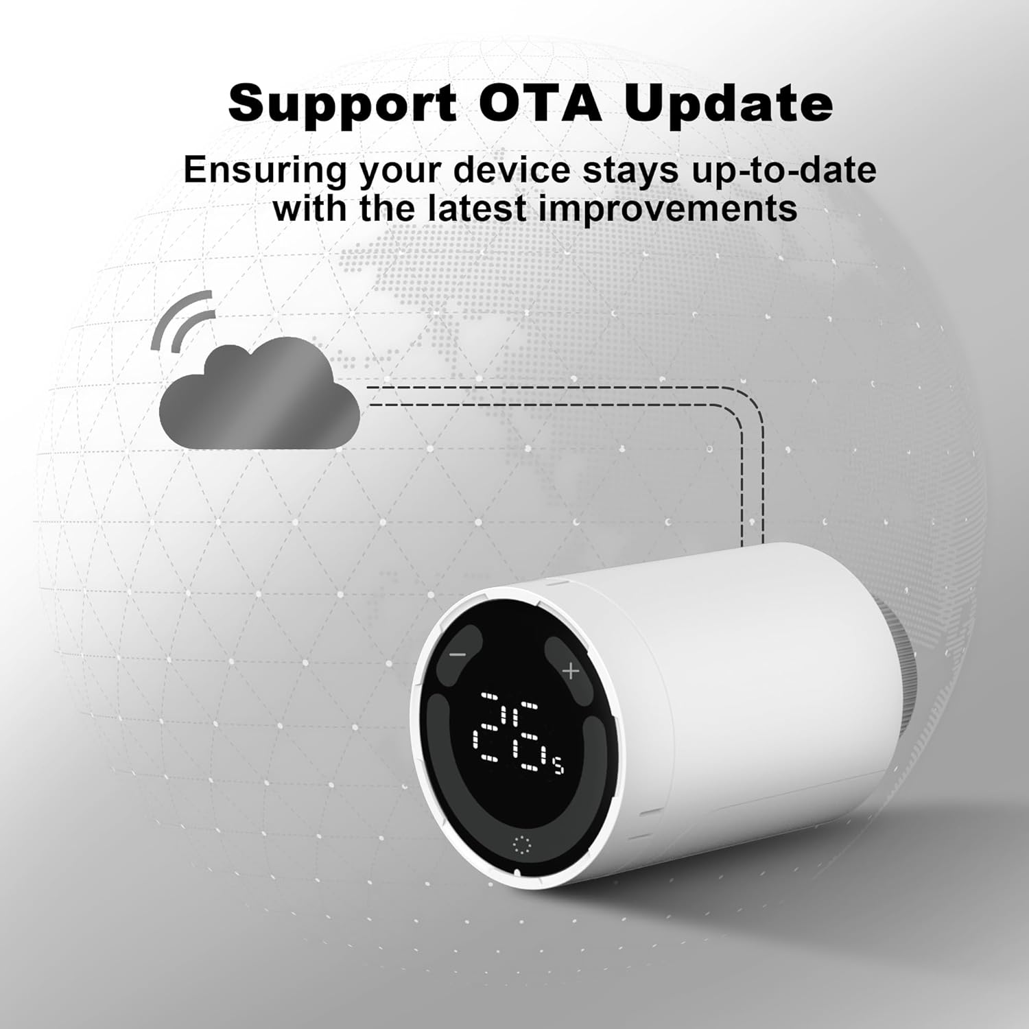 Stay Future-Ready with OTA Updates – Enjoy seamless upgrades with our smart radiator thermostat’s OTA (Over-the-Air) update feature. Keep your device up-to-date with the latest functions and improvements, all without the need for manual intervention. Experience enhanced performance, smarter features, and extended compatibility—all delivered directly to your thermostat with just a click.