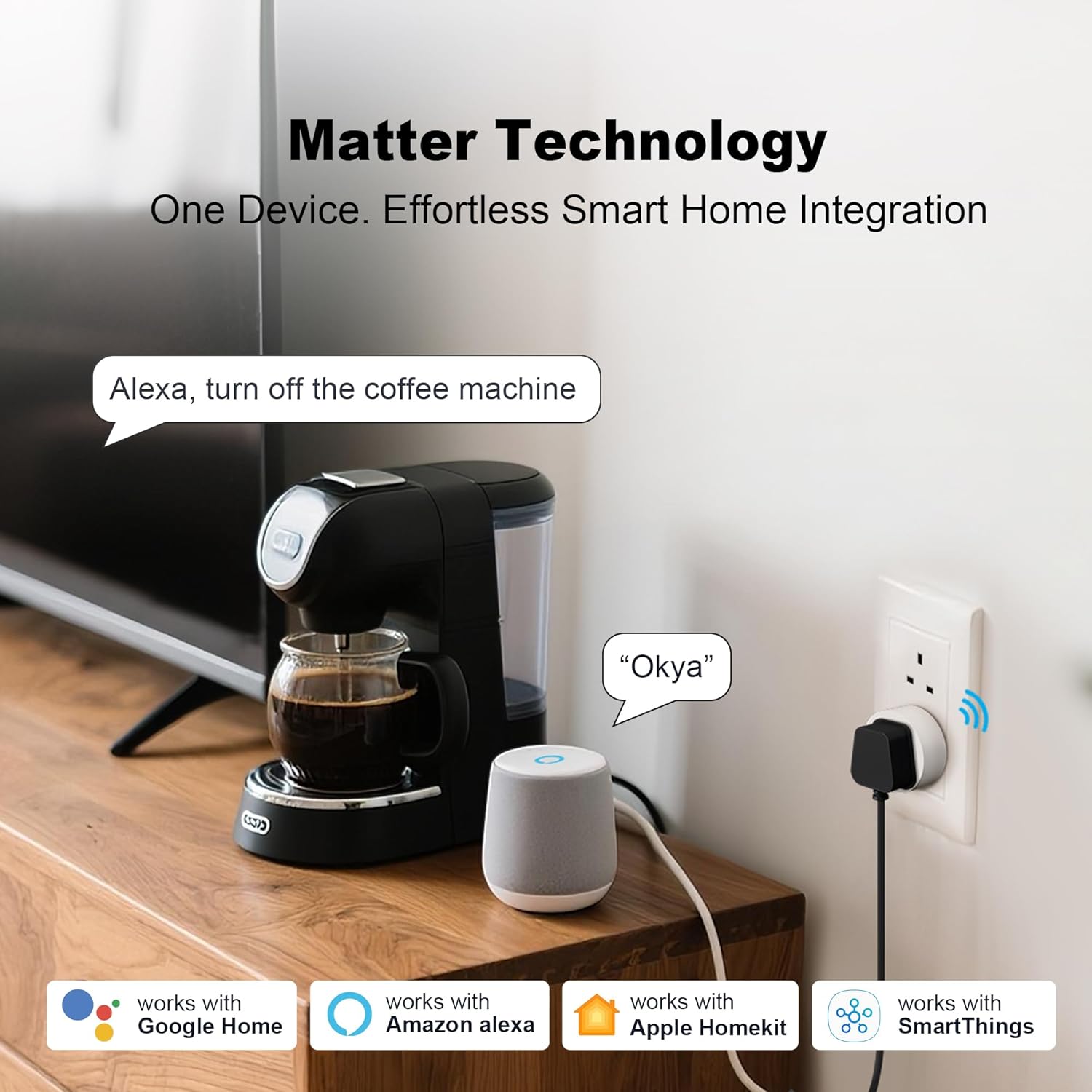 The Matter Plug allows easy voice control with Alexa, Google Assistant, and Siri.