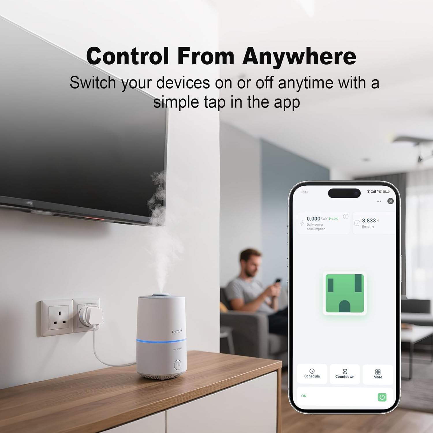 【Programmable Timers & Countdown】Schedule individual on and off times according to your needs. Use convenient countdown functions to automatically control devices – for greater convenience and energy savings.