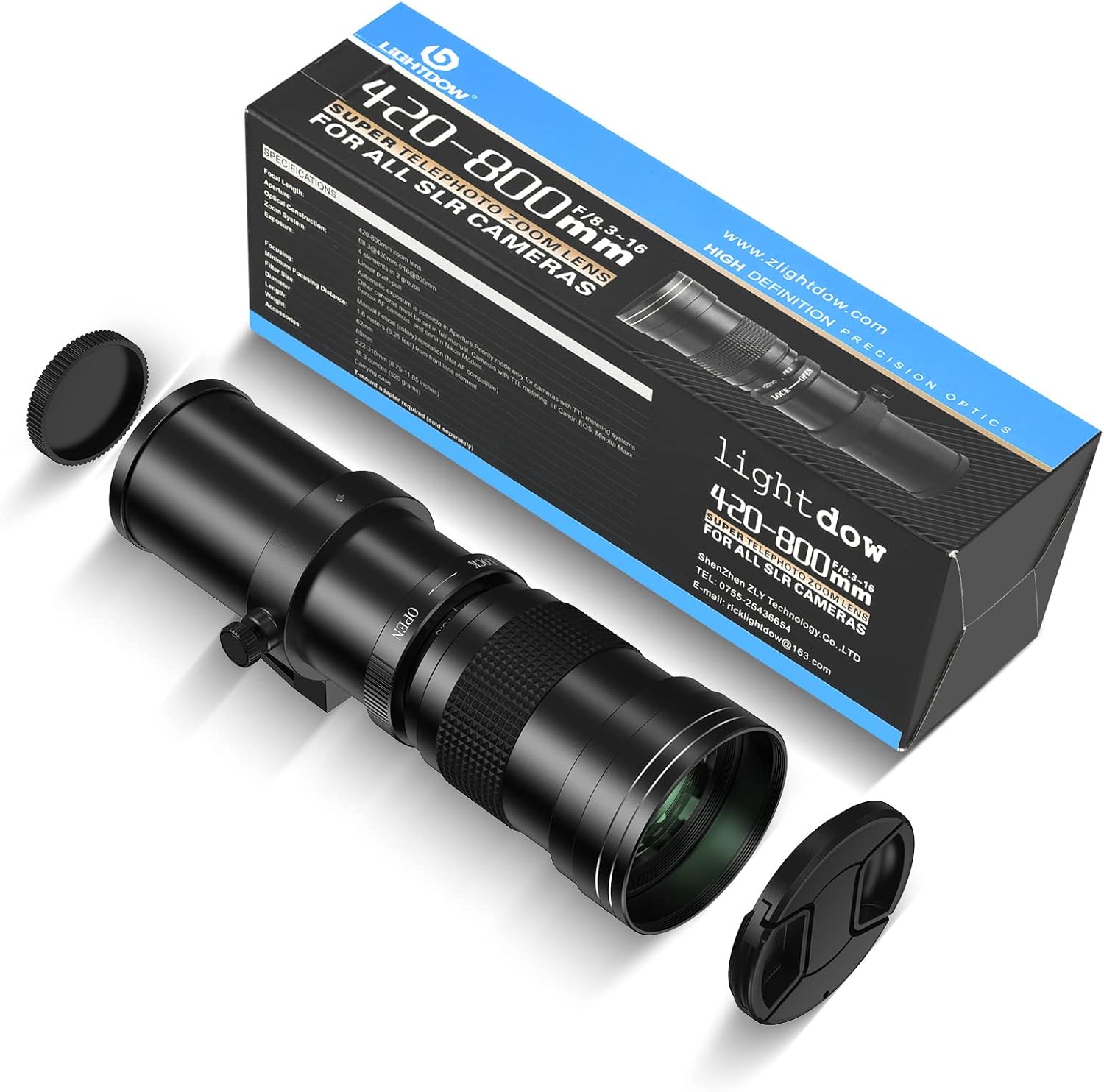 Compatibility with Canon Cameras: The Lightdow 420-800mm f/8.3 telephoto lens is fully compatible with a range of Canon EOS Canon EOS Rebel SL3, SL2, SL1, T8i, T7i, T7, T6s, T6i, T6, T5i, T5, T4i, T3i, T3, T2i, T1i, 250D (750D), 760D, 1200D, 1300D, 1500D, 2000D, 4000D, 6D, 7D, 60D, 70D, 77D, 80D, 90D; 5D, 5D II, 5D III, 5D IV,1D. This lens offers versatility for a wide array of shooting scenarios, from portraits and landscapes to street photography and macro photography.