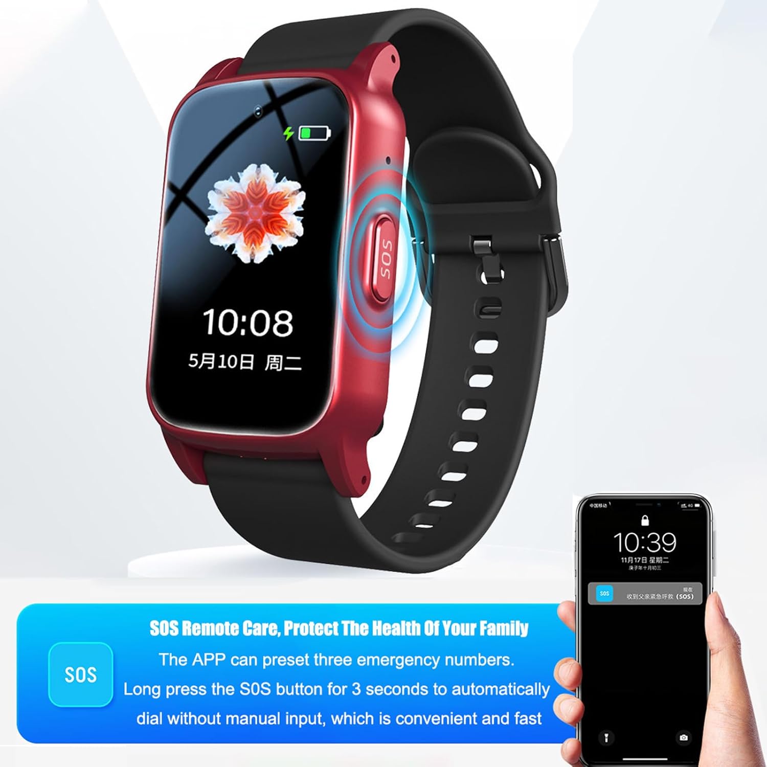 Stay connected and take care of your loved ones with this 4G smart watch. Simply insert a SIM card (not included) to utilize features such as health monitoring, elderly fall detection, SOS alarm, anti-loss tracker, video calling, geofencing, and SOS voice messaging. Perfect for individuals with dementia or Alzheimer’s, this watch allows for easy communication even when the wearer is outside and their location is unknown. The SOS button can be pressed in emergencies to automatically dial a stored emergency number.