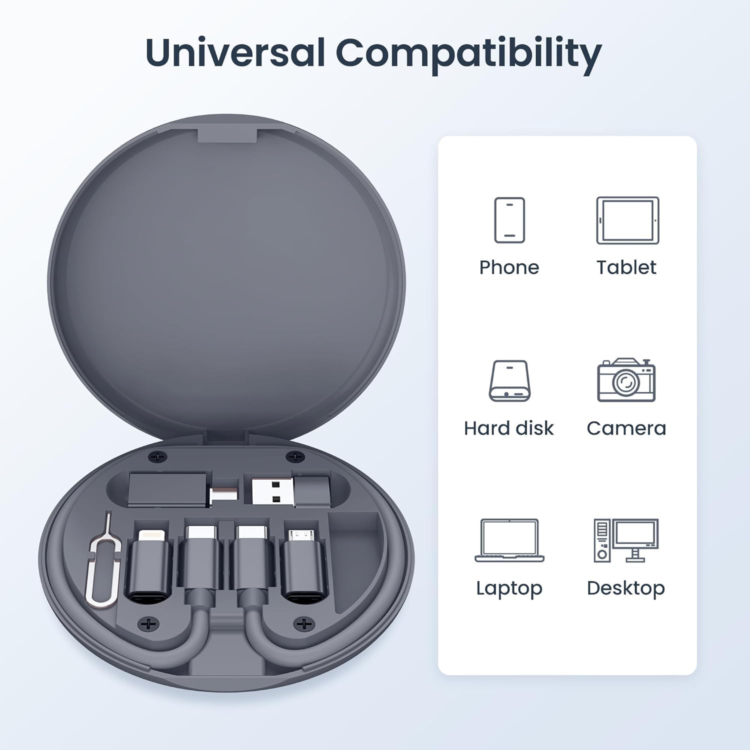 Travel-Friendly Design: This kit includes a SIM card ejector tool and a dedicated slot for your SIM cards, making it perfect for travel. The round case, measuring 9.3 cm (3.7 inches) in diameter and 1.2 cm (0.5 inches) in thickness, fits easily into bags, backpacks, or large pockets, keeping everything compact and organized.