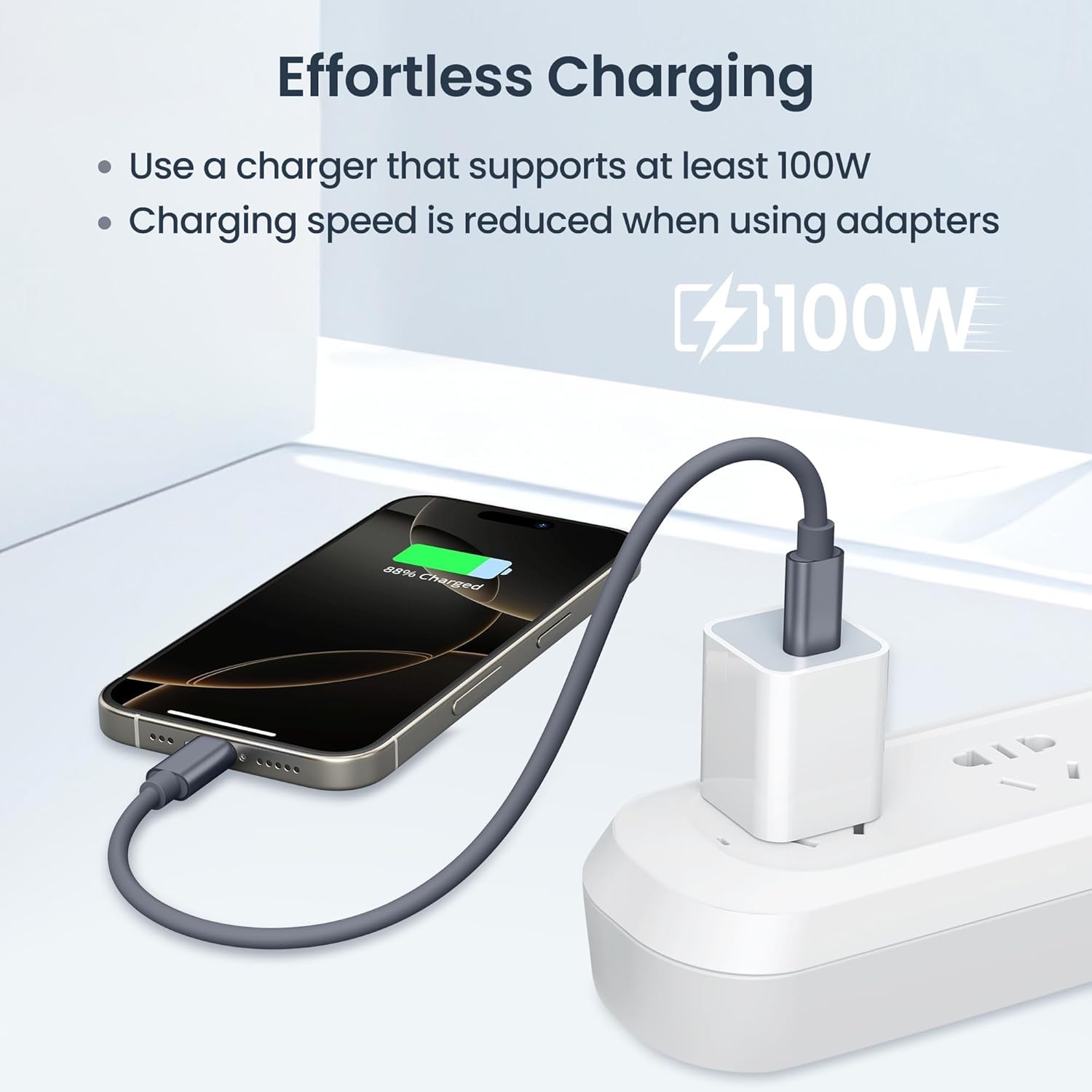 Fast and Efficient Charging: The included USB-C to USB-C cable supports 100W power delivery, meeting most charging needs for laptops, tablets, and smartphones. While using adapters may reduce charging speed slightly, they significantly enhance your device connectivity options.