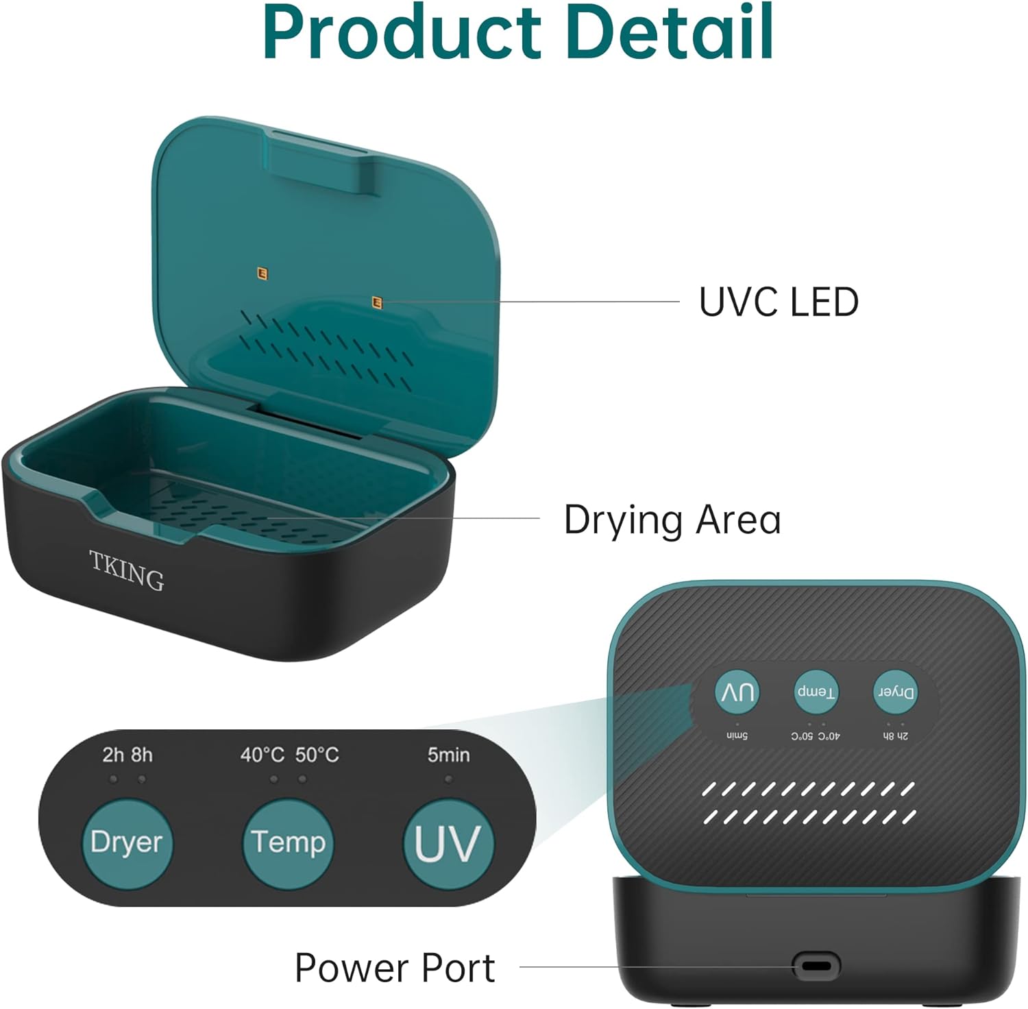 One-click to select drying time and temperature, Choose 2h or 8h, 40℃ or 50℃ to suit your environment humidityConstant temperature at the temperature of your choice to promote the evaporation of water and keep the equipment