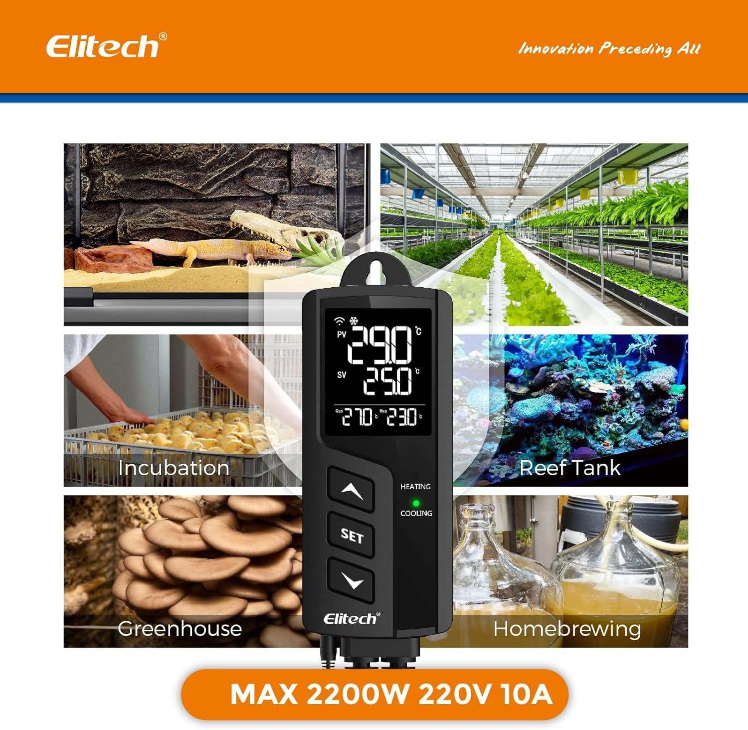 10 reviews for Elitech WiFi Temperature Controller 2 Pre-wired Outlet Digital Thermostat Heating and Cooling, STC-1000WIFI
