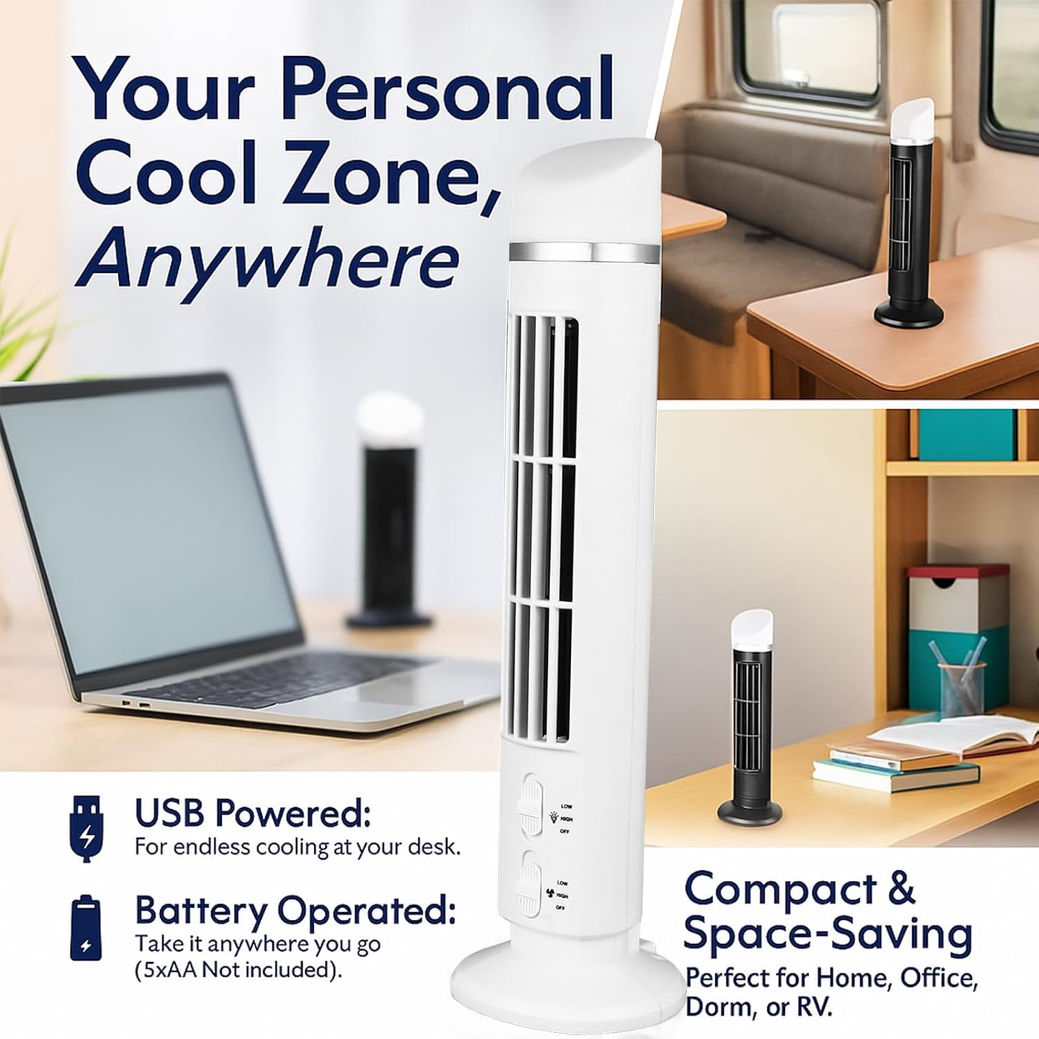Compact and Portable: A space saving bladeless tower fan that can be placed in any room or corner due to its small base and body, allows for easy transportation, making it an ideal portable fan for homes, RVs, or offices.
