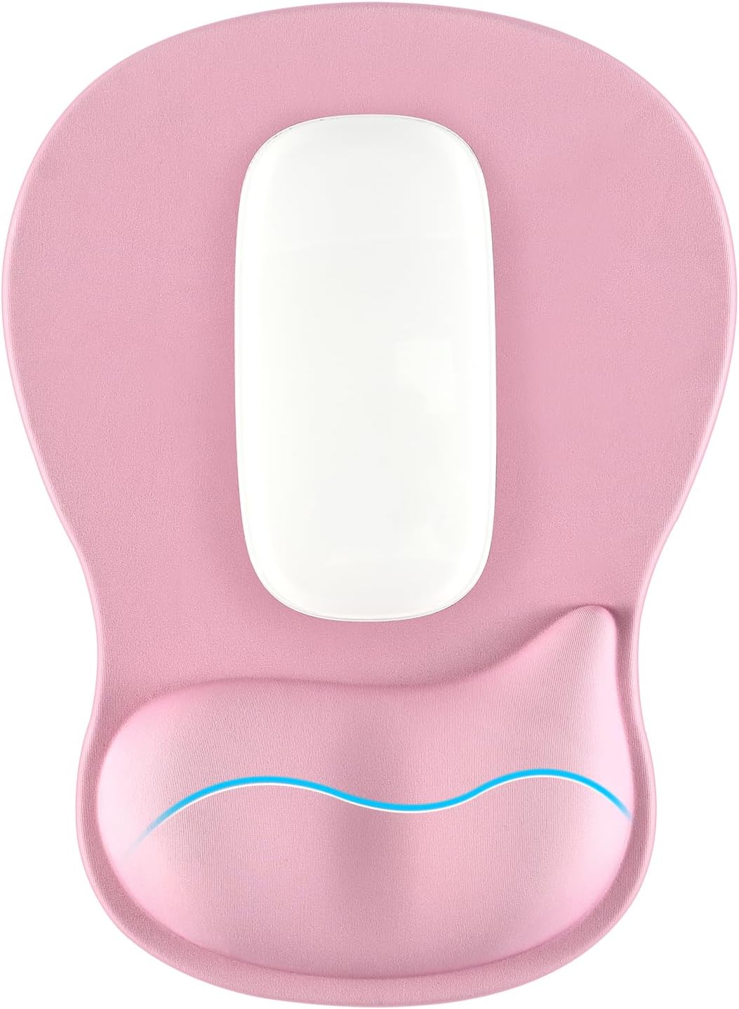 EooCoo Mouse Pad with Gel Pad Rest Wrist Support and Anti Slip Silicone Base, Durable and Washable Ergonomic Mouse Mat, Matt Mousepad Desk Accessories for PC Laptop Computer Mice – Pink