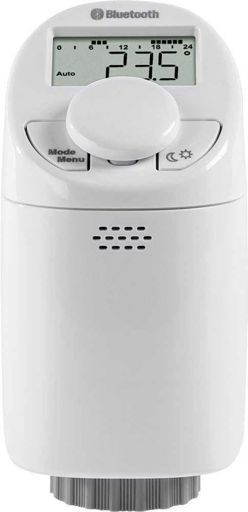 Radiator Thermostat with BLUETOOTH smart for demand-based regulation of the room temperature via free iOS and Android smartphone app Operation also possible without smartphone at all times Compact device with low-noise operation Up to 30 % energy savings within typical applications Automatic temperature reduction during ventilation saves additional energy Holiday function: The temperature can be reduced until you are back home Child-proof lock/operating lock prevents against unintended changes Configuration of the week program offers definition of individual temperature profiles with up to 7 switching times per day