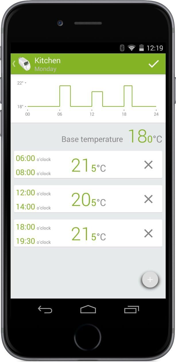 Radiator thermostat with Bluetooth Smart for regulation of room temperature according to the personal needs
