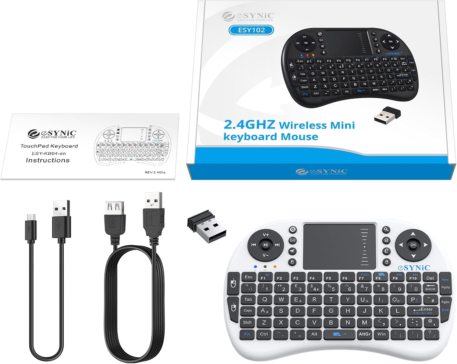 8 reviews for eSynic Mini Wireless Keyboard 2.4G Handheld Wireless Mini Keyboard Touchpad Mouse Combo Multi-media Portable Small Rechargeable for PC Google Smart TV Tivo Box Raspberry PI PS4 etc