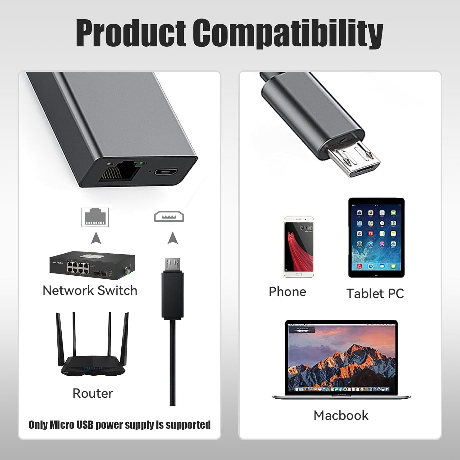 Universal Compatibility: Designed for versatility, our Micro USB Ethernet Adapter is compatible with Fire Stick 4K, Fire TV Stick, Fire TV Cube, Chromecast, Google Home Mini, and more, ensuring reliable network performance for all your streaming needs.