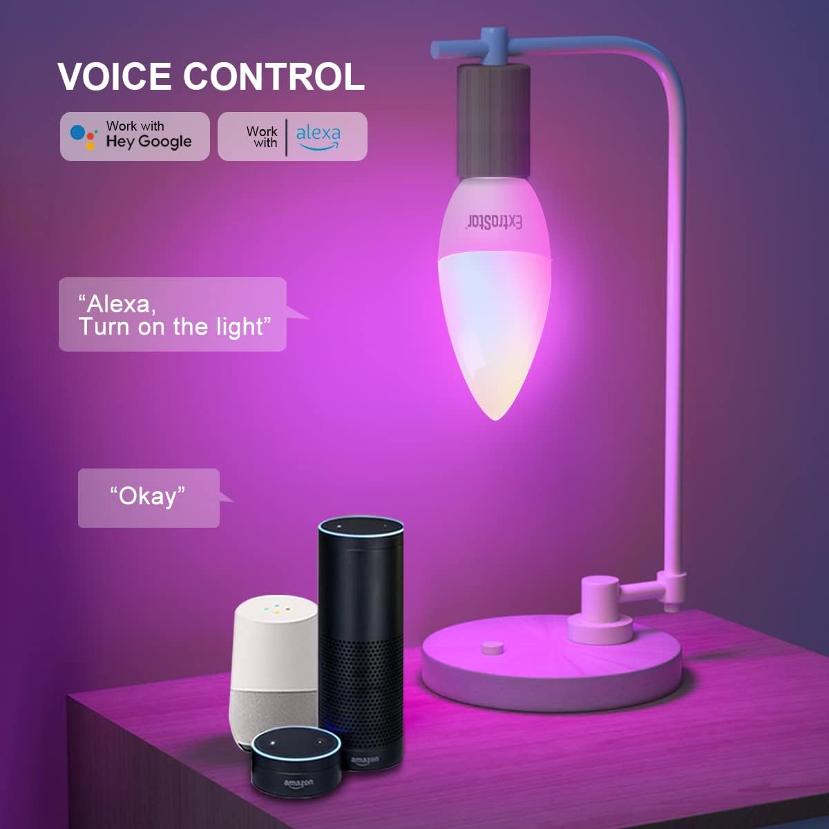 8 reviews for EXTRASTAR E14 Smart Bulb, Alexa Light WiFi LED Candle Bulbs C37, 6W 600lm, WiFi RGB Color Dimmable Multicolor + Warm or White Light, Compatible with Alexa and Google Home, 1 Count