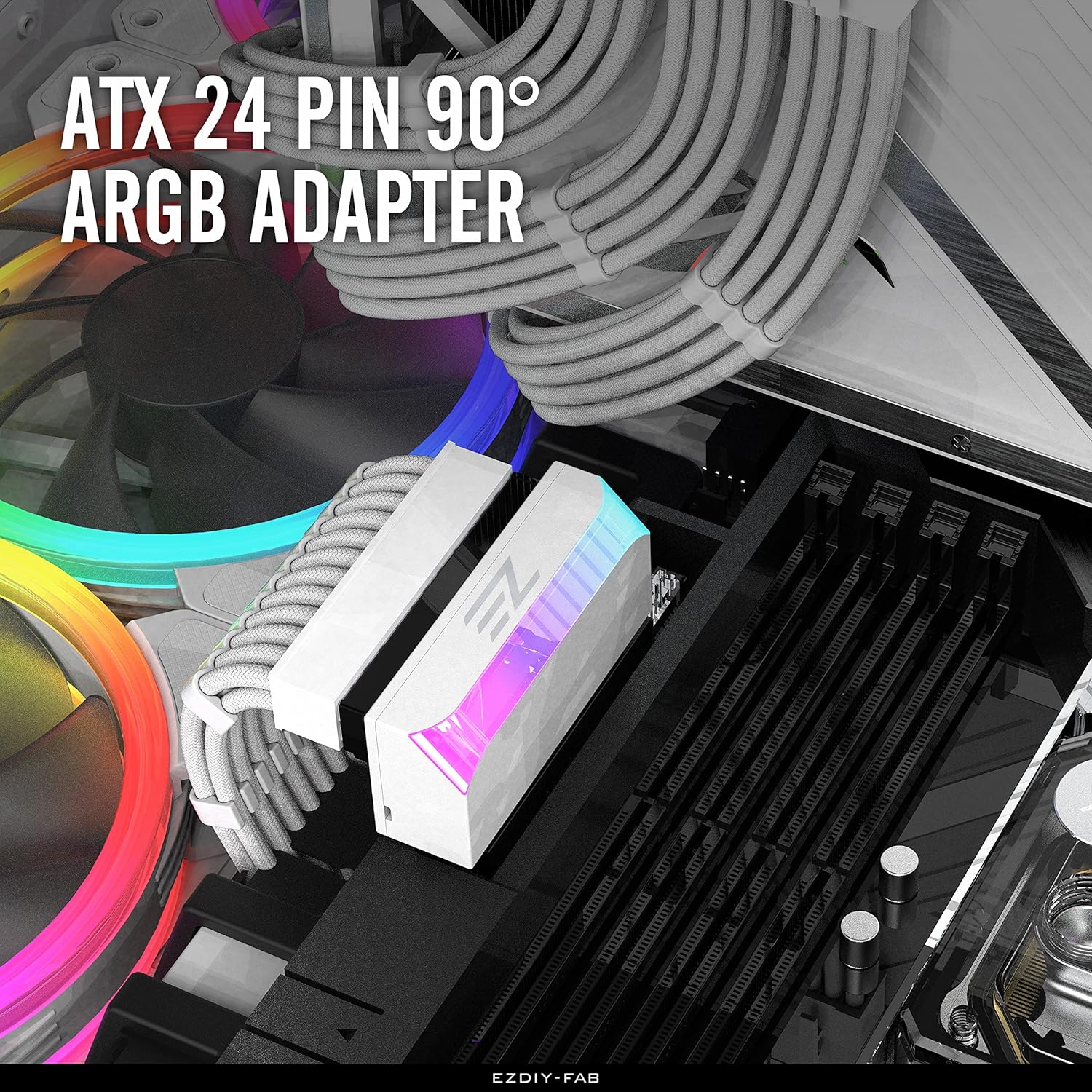 EZDIY-FAB ATX 24-pin 90 Degree Power Connector Adapter 5V 3 Pin ARGB Rainbow Female to Male Power Adapter for Computer Motherboard ATX Power Supply- White-1 Pack