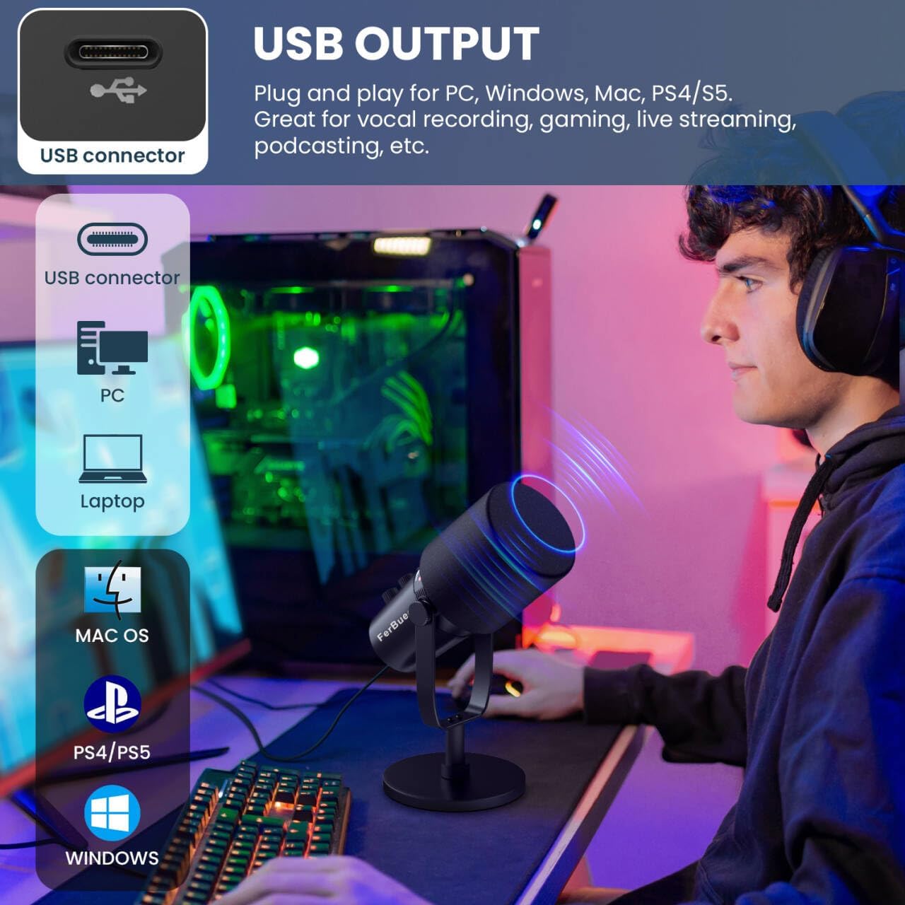 Wide Compatibility: The USB output microphone is compatible with computers, tablets, PS4/5, and most mobile phones, The XLR analog output for connecting to all professional interfaces, mixer or portable PA system when podcasting in your studio. It is very suitable for gaming, podcasting, recording, live broadcasting, etc.