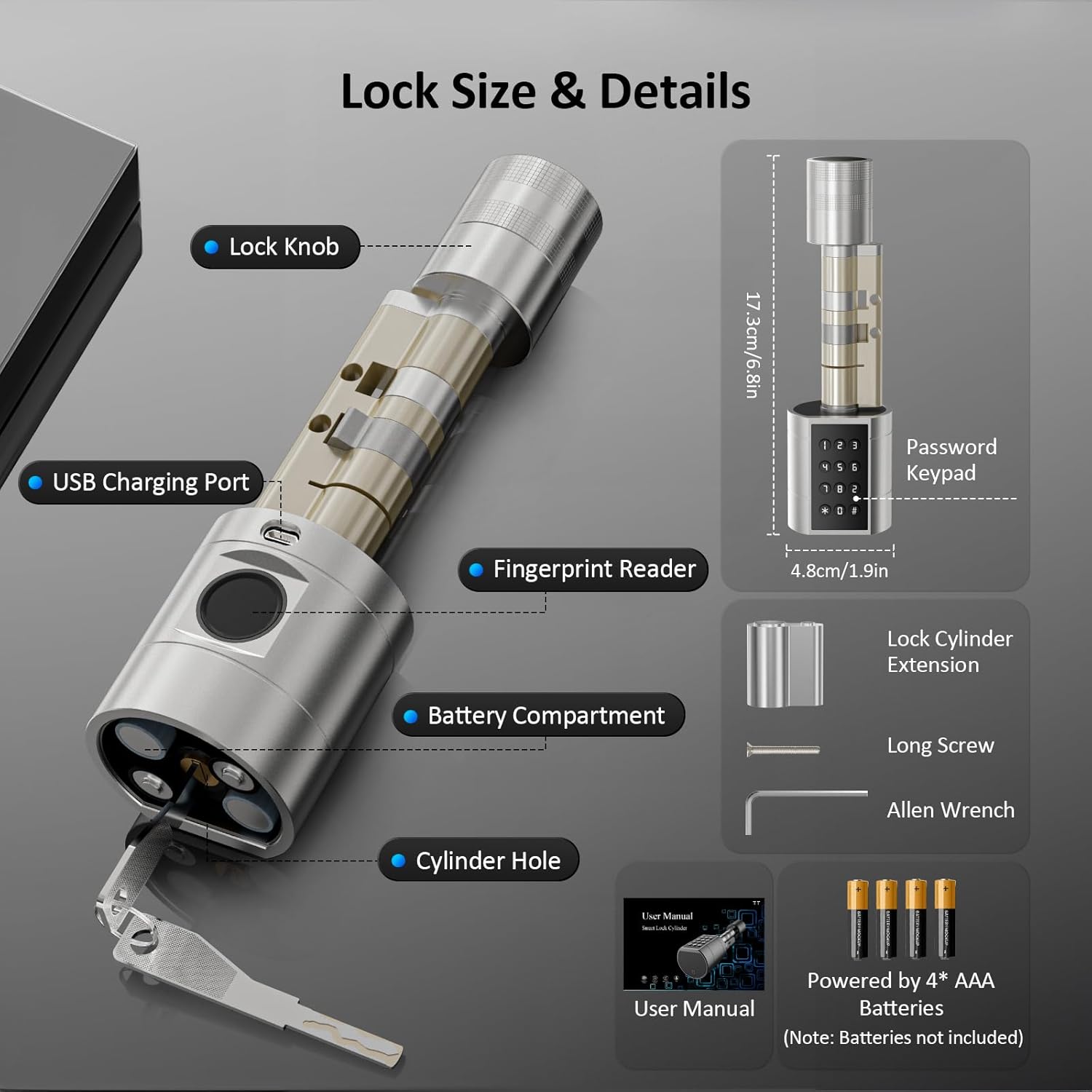 Smart Battery Management: Powered by 4 AAA alkaline batteries, our electronic door lock offers a standby time of up to 10 months. The system will remind you to replace the batteries when the power is below 20%, ensuring your lock remains operational at all times.