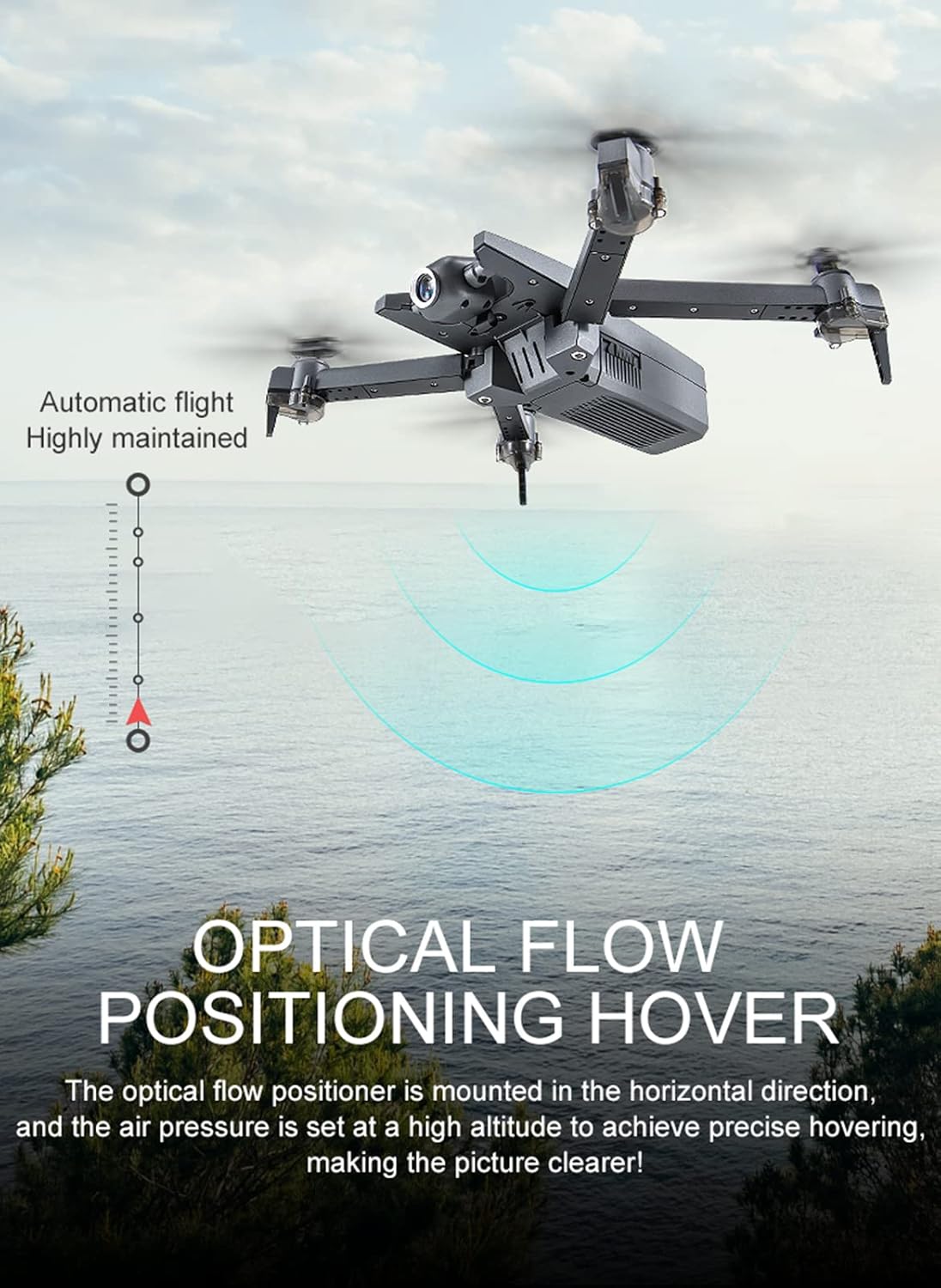 ใOPTICAL FLOW POSITIONING AND HOVERINGใ: The horizontal direction is equipped with an optical flow positioner, and the height direction is equipped with an air pressure fixed height, so as to achieve precise hovering and make the photo clearer!