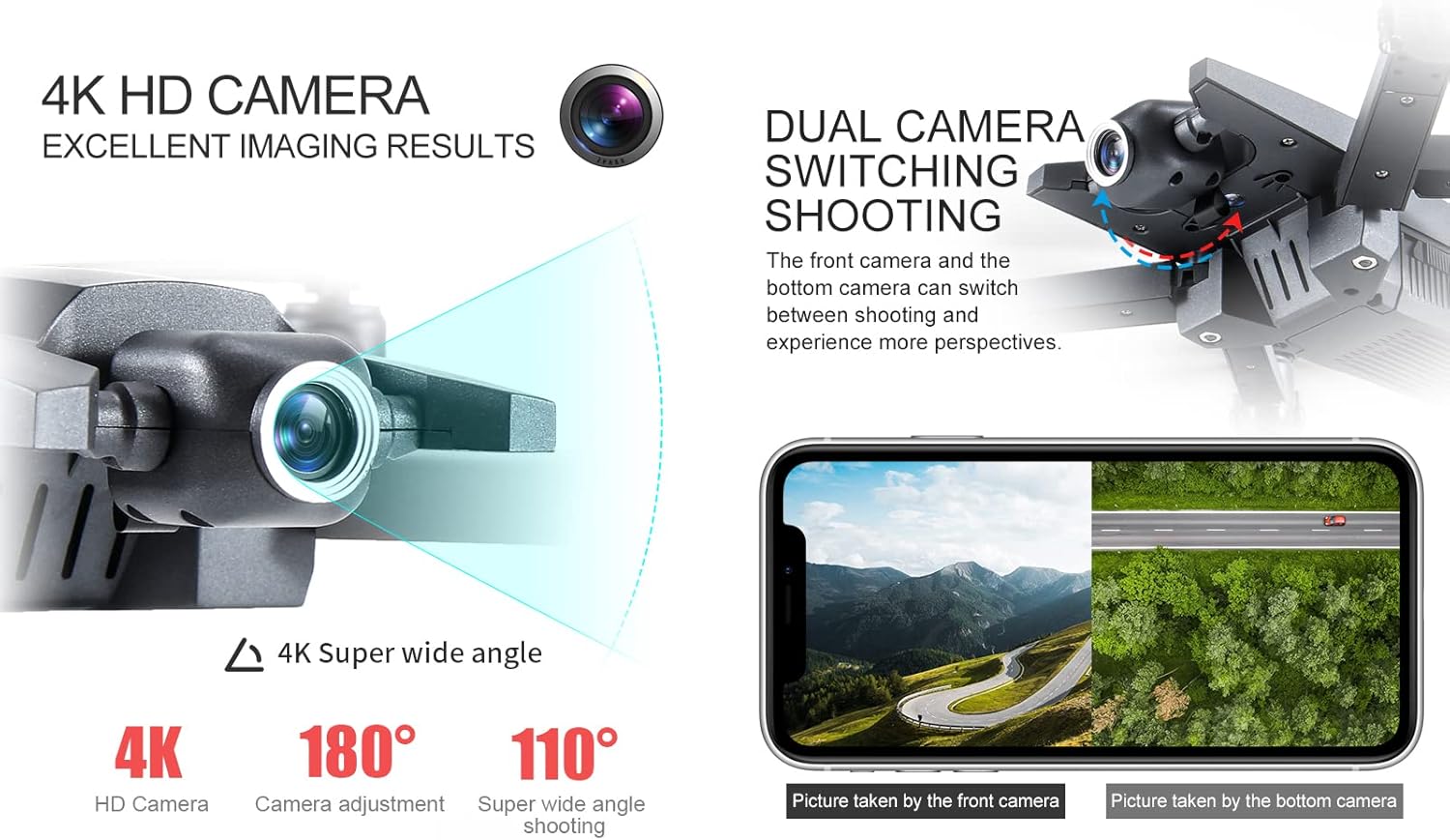 ใFOLDING Drones with cameras are for beginnersใ: The arm of the Drones with cameras are for beginners adopts a classic three-dimensional folding design, which feels just right,Stability in flight is guaranteed even after thousands of folds. folded The area of the aircraft is only the same as that of a mobile phone, so you can easily master it with one hand.