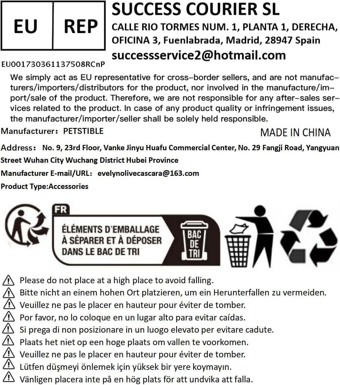 Power supply: 3*AAA battery/USB (self-provided rechargeable battery, recycled)