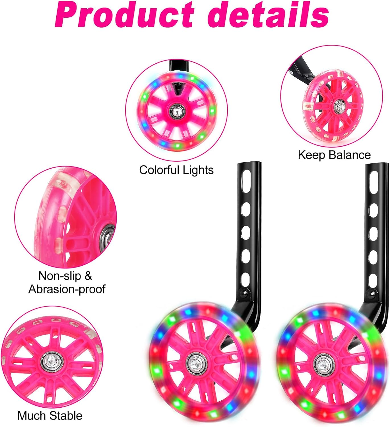Foreverup Bicycle Training Wheels for Kids Bike, Bike Stabilizers Support Wheel Mute Flash Wheels with Adjustable Bicycle Stabiliser Mounted Kit for Childs Bike, for 12 14 16 18 20 Inch Bikes