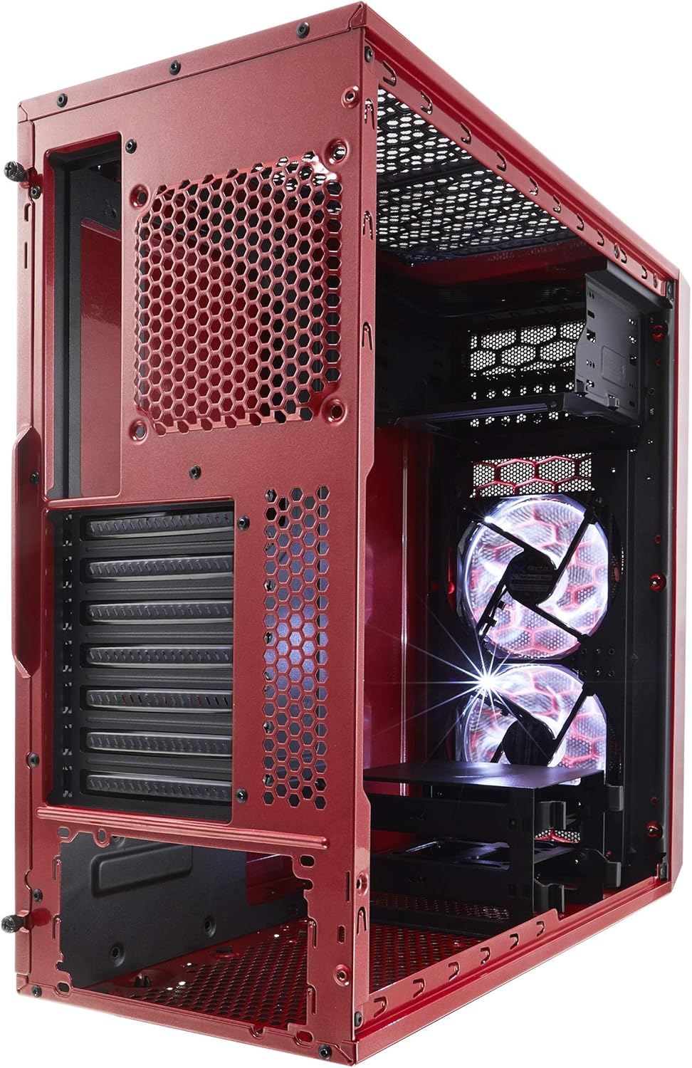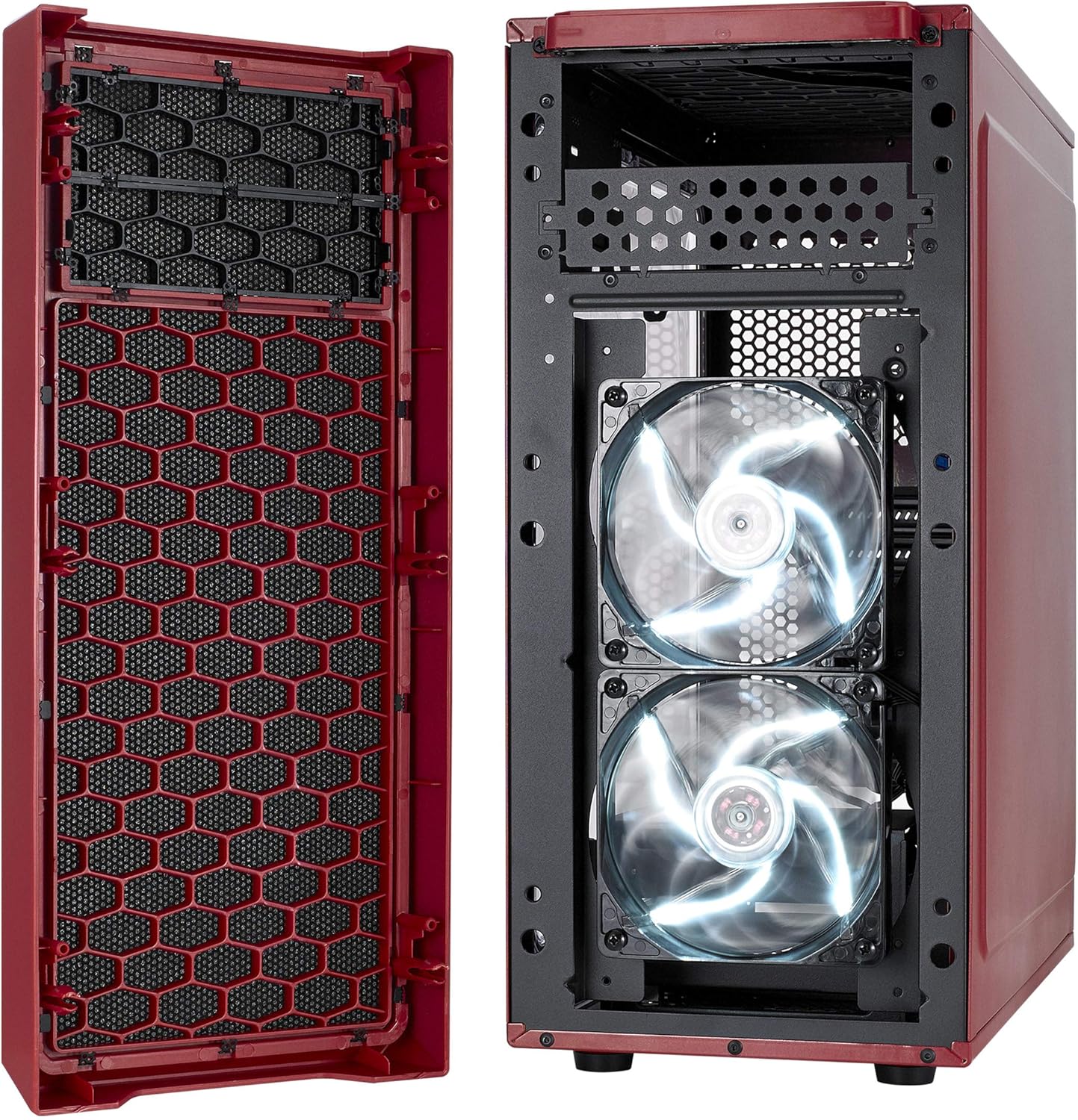 Fractal Design Focus G – Mid Tower Computer Case – ATX – High Airflow – 2x Fractal Design Silent LL Series 120mm White LED Fans Included – USB 3.0 – Window Side Panel – Red
