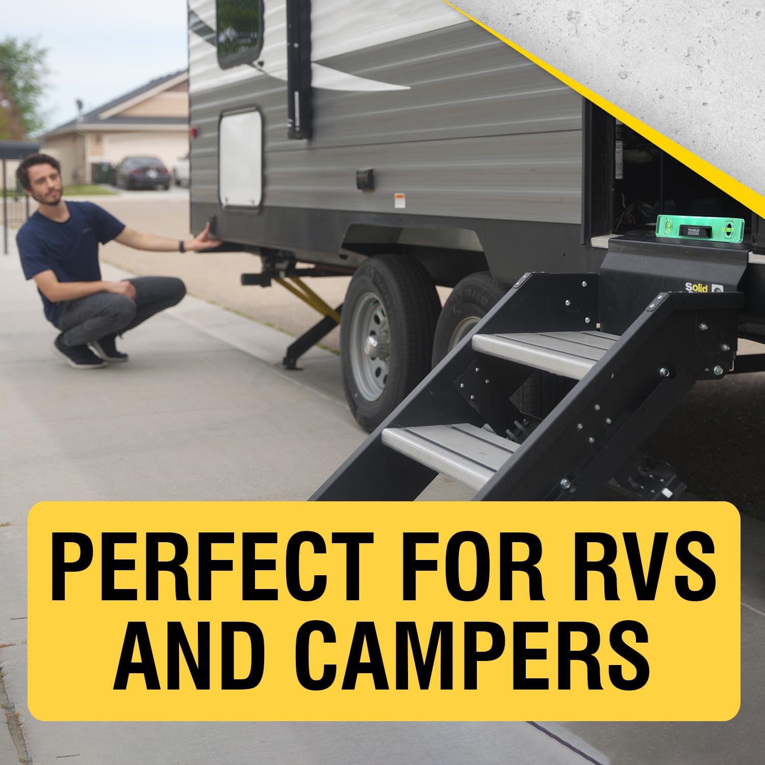 VIEWABLE IN DARK AND NORMAL LIGHT CONDITIONS: The level’s lights are easy to see in dark, dimly lit, and normal light environments. This is the perfect tool for levelling your RV or camper at night, working in dark crawl spaces, and more.