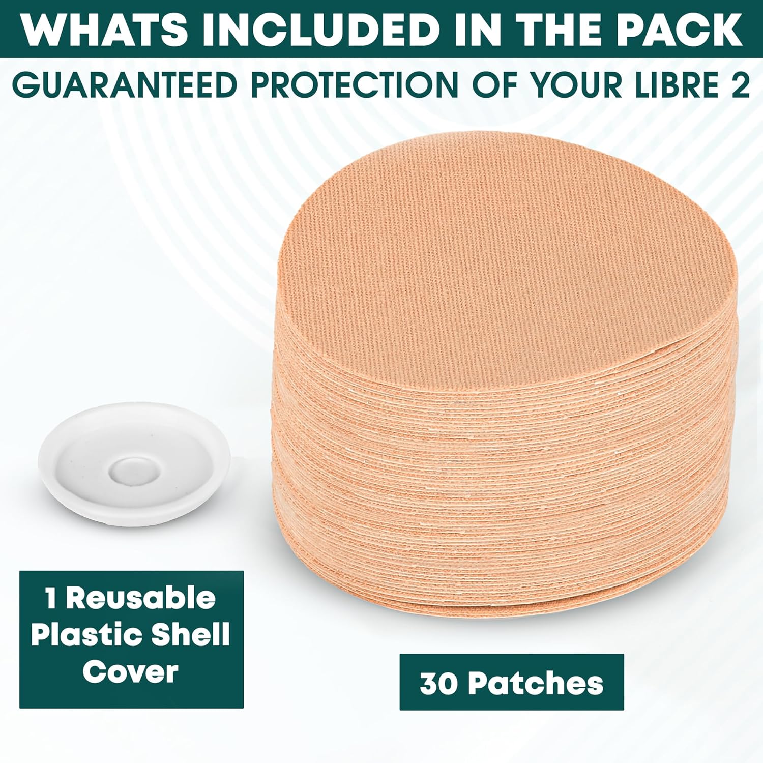 Freestyle Libre 2 Sensor Covers | Waterproof Adhesive Patches for CGM | Pack of 30 with 1 Reusable Hardshell Cover | Breathable & Sweatproof Suitable for Sensitive Skin | Tan Colour | Libra 2 Covers