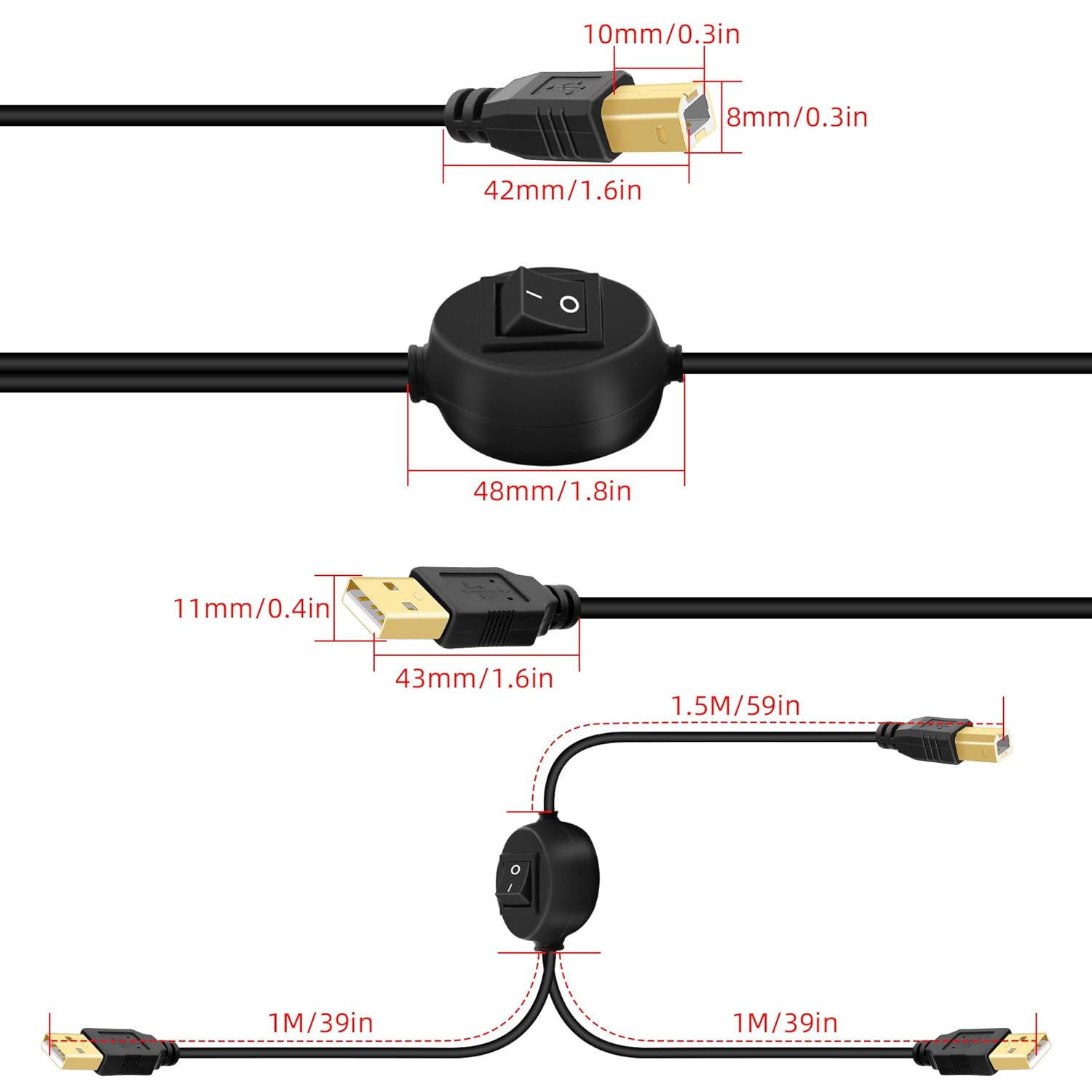 High speed printing,Stable Data Transfer: The transmission speed of this printer cord up to 480 Mbps, can print a page in seconds. And solving the problem of unstable wireless printing. Please make sure this is what you need before ordering!!! Won’t work for midi electronic musical instruments!!!