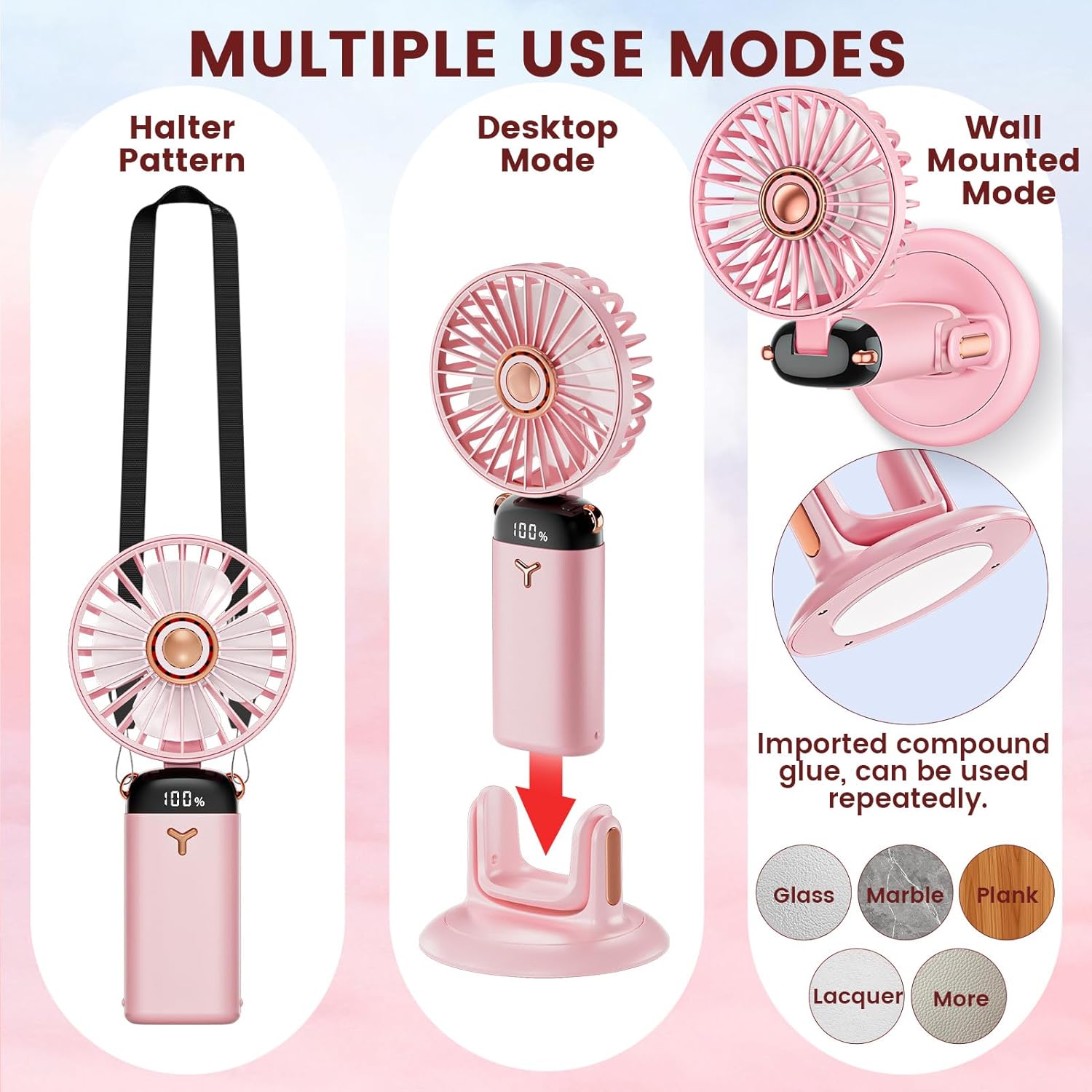 Foldable Design: The fan head can be folded at 90°that can be used both as a desktop fan and a handheld device. The fan easily attaches to the included base, allowing for stable placement on desks or tables. Alternatively, detach it for portable use, making it perfect for home, office, or on-the-go cooling