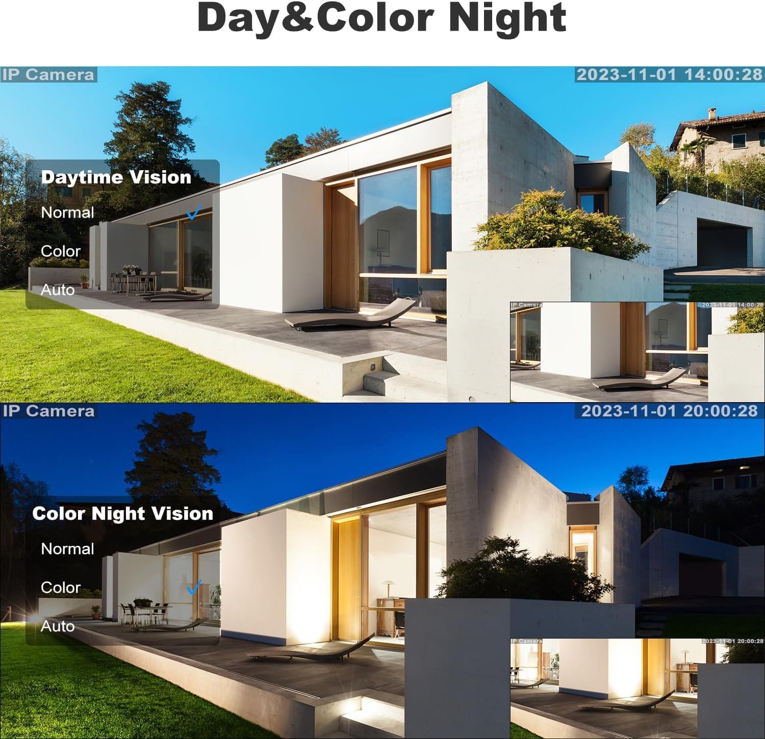 🌙【Full-Color Night Vision】Unlike traditional black-white IR cameras, this dual lens outdoor camera captures vivid 1080p color footage even in near-total darkness. Perfect for home security camera monitoring driveways, gardens, or dimly lit warehouses.