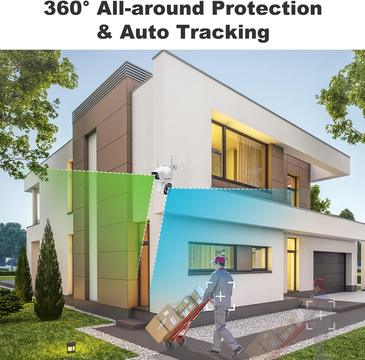 🤖【Intelligent Human Tracking & Auto-Follow 】This surveillance camera outdoor uses advanced technology to distinguish humans from objects, reducing 95% of false alarms from wind or moving branches. Once a person is detected, the IP camera automatically locks onto the target and follows their movement in real time.