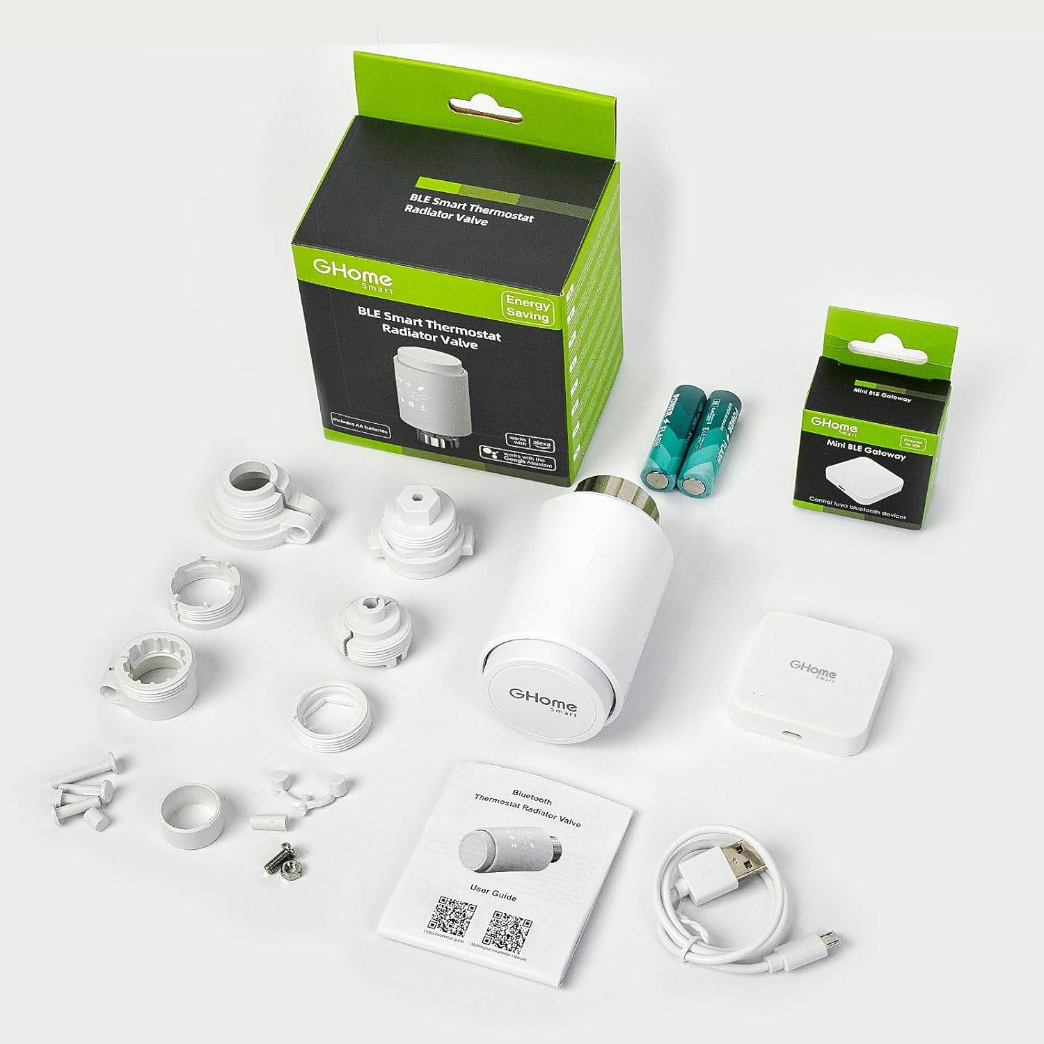 GHome Smart Radiator thermostat with gateway, Bluetooth connection app control, energy efficient, intelligent temperature control, schedule, compatible with Alexa, Google Assistant, hub required