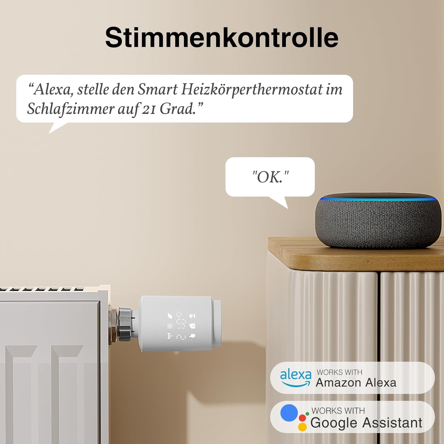 Der Artikel wurde mir im Zuge eines kostenlosen Warentests überlassen. Dies hat jedoch keinerlei Einfluss auf meine Bewertung.An smarte Heizkörperregler hatte ich mich bisher noch nicht ran gewagt. Es gibt so viele verschiedene Systeme und möchte man das ganze Haus umrüsten, wird es in jedem Falle ganz schön teuer. Also habe ich hier mal die Gelegenheit beim Schopf gegriffen und bestellt.In der Packung befinden sich der Regler, diverse Adapter für unterschiedlichste Heizkörperventile, eine Bridge, um den Regler ins Internet zu bringen, Batterien und eine Anleitung.Die Installation ging recht schnell von statten. Ich brauchte keinen Adapter und konnte den Regler direkt anstatt des vorherigen auf den Heizkörper schrauben. Der Regler zentriert sich einmal und ist ab dann im Prinzip sofort nutzbar auch ohne Handy und Bridge. Die Soll-Temperatur wird auf einem LED Display angezeigt.Nun ging es um den smarten Teil des Reglers. Die Bridge wird per USB mit Strom versorgt. Die Kommunikation zwischen Bridge und Regler geschieht per Bluetooth, die Bridge wiederum bringt den Regler per WLAN ins Internet.App installiert, alles verbunden – soweit so gut. Nun noch den Alexa Skill aktivieren und hier folgte der erste Zonk. Es war mir nicht möglich den Regler im Alexa Kosmos unterzubringen obwohl es als Feature beworben wird.Was ich auch nutzen wollte war die Erkennung geöffneter Fenster. Das funktioniert leider auch überhaupt nicht. Selbst als der Raum im Winter auf den Nullpunkt runtergekühlt war, erkannte der Regler keinen plötzlichen Temperaturabfall und heizte fröhlich für die Welt drauÃen. Die Funktion war natürlich aktiviert.Als Umweg nutze ich nun beim morgendlichen Lüften des Schlafzimmers die Funktion “Heizfunktion pausieren” -> “Heizfunktion ein?” Mit letzterem ist gemeint “Heizpausierungsfunktion einschalten” Eine unglückliche Ãbersetzung. Um die Heizung dann nach dem Lüften wieder anzuschalten wähle ich dann “Heizfunktion aus”. Wenn der Regler arbeitet ist es kaum hörbar.Die Anzeigen in der App sind fast nie aktuell. Man muss immer ein paar Mal klicken bis etwas passiert und die tatsächliche aktuelle Temperatur angezeigt wird. Auch Bedienungen wie oben genannt muss ich teilweise 2-3 Mal ausführen bis es wirklich passiert.Das einzige smarte Feature, was verlässlich funktioniert, sind die Zeitpläne, die man einrichten kann. So senke ich die Raumtemperatur nachts ab und erhöhe sie automatisch unter der Woche zur Arbeitszeit wenn ich am Schreibtisch sitze.Nach zwei Wochen Betrieb hat Alexa es dann plötzlich doch noch automatisch geschafft den Regler einzubinden und ich könnte nun auch per Stimme die Temperatur regeln.Wegen der vielen Kinderkrankheiten und der trägen Bedienung per App würde ich von diesen recht preisgünstigen Reglern nicht noch mehr bestellen.