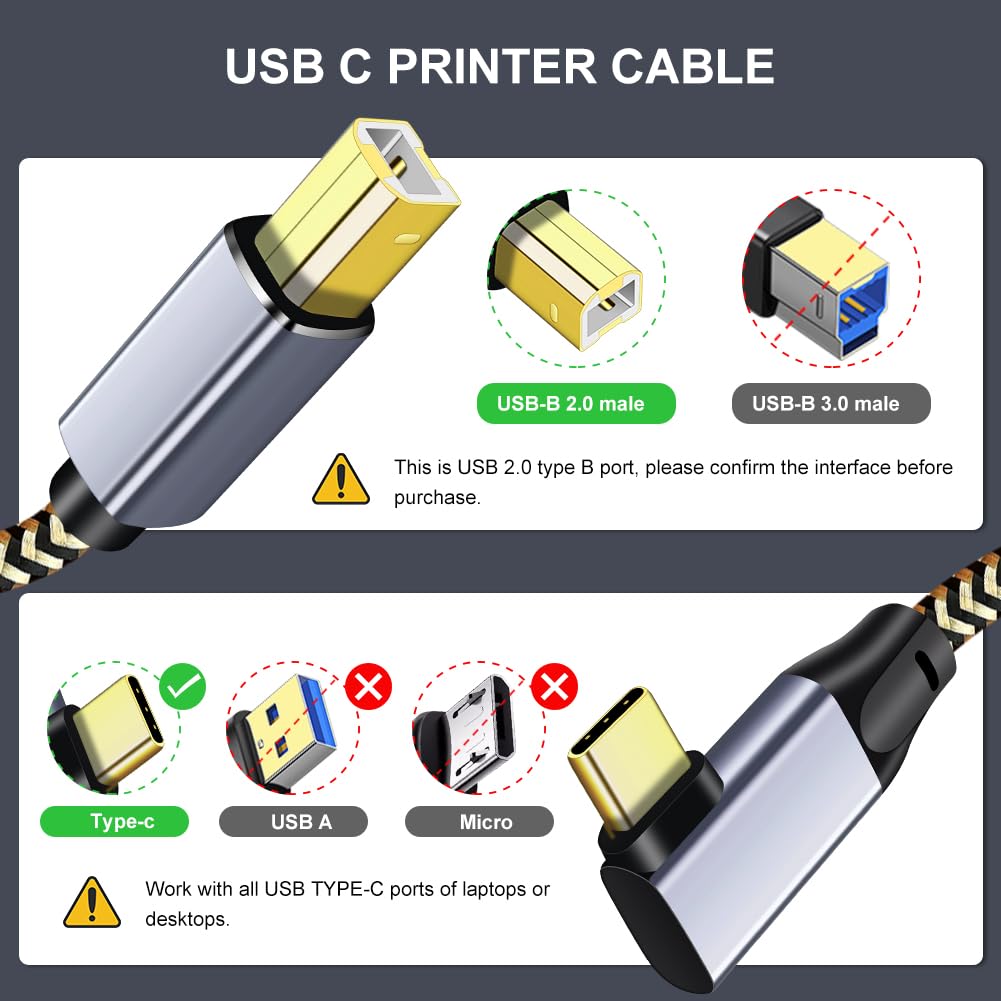 1.This is USB C to USB-B Printer cable 2.0,Please make sure your printer has USB 2.0 B Female interface before your purchase.